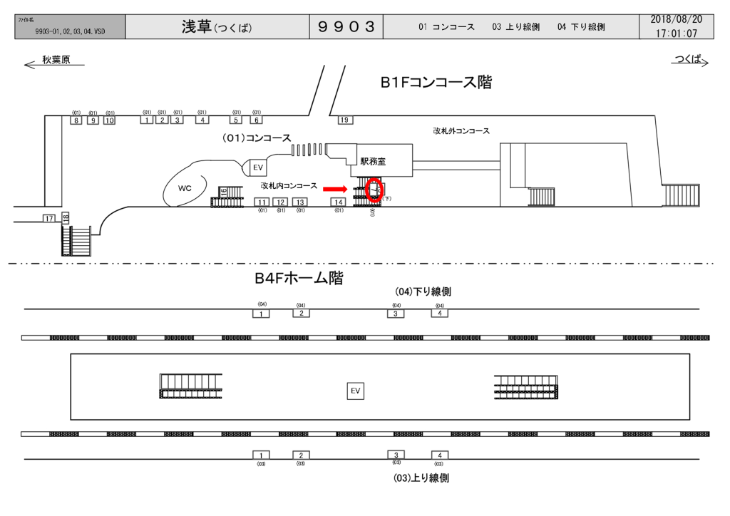 浅草駅は一日の乗降客数が18,202人、つくばエクスプレス(TX)が発着する駅です。