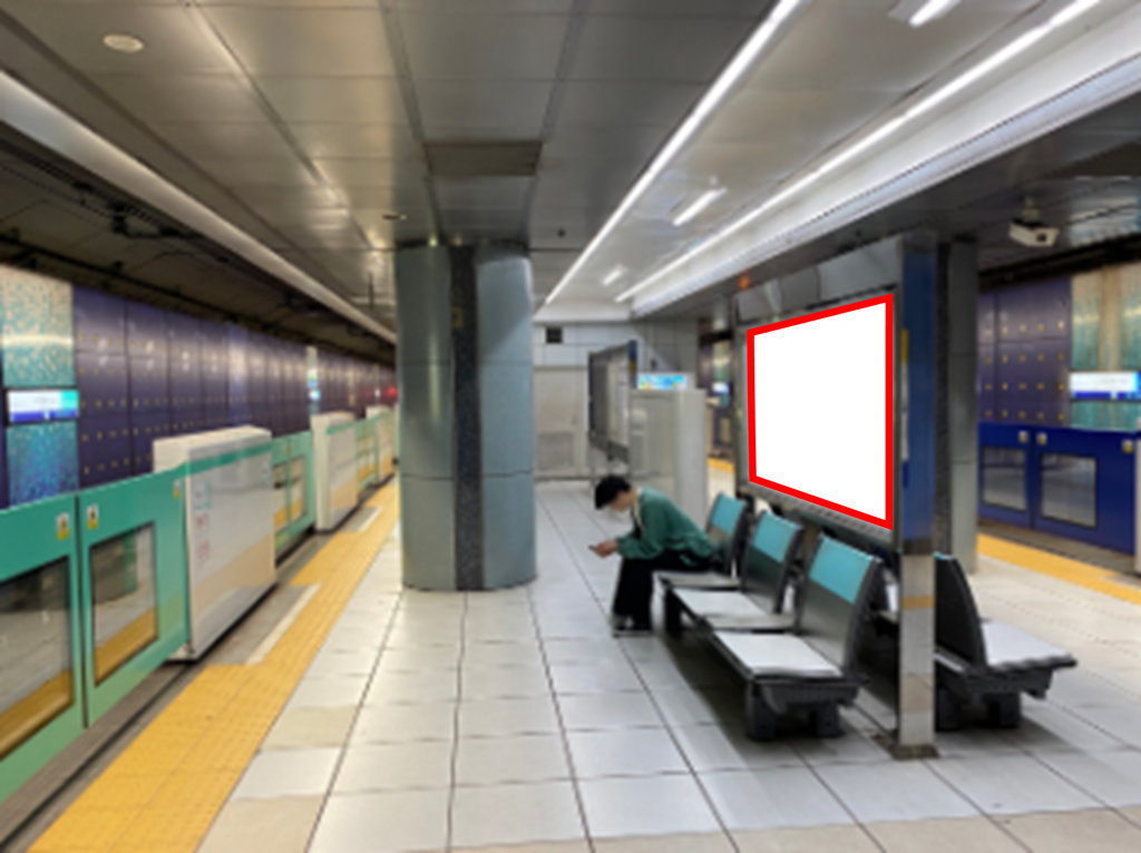 ■ホーム中央付近、ホームエレベーター横のベンチ看板でホームの方や車内の方もご覧になる看板です。