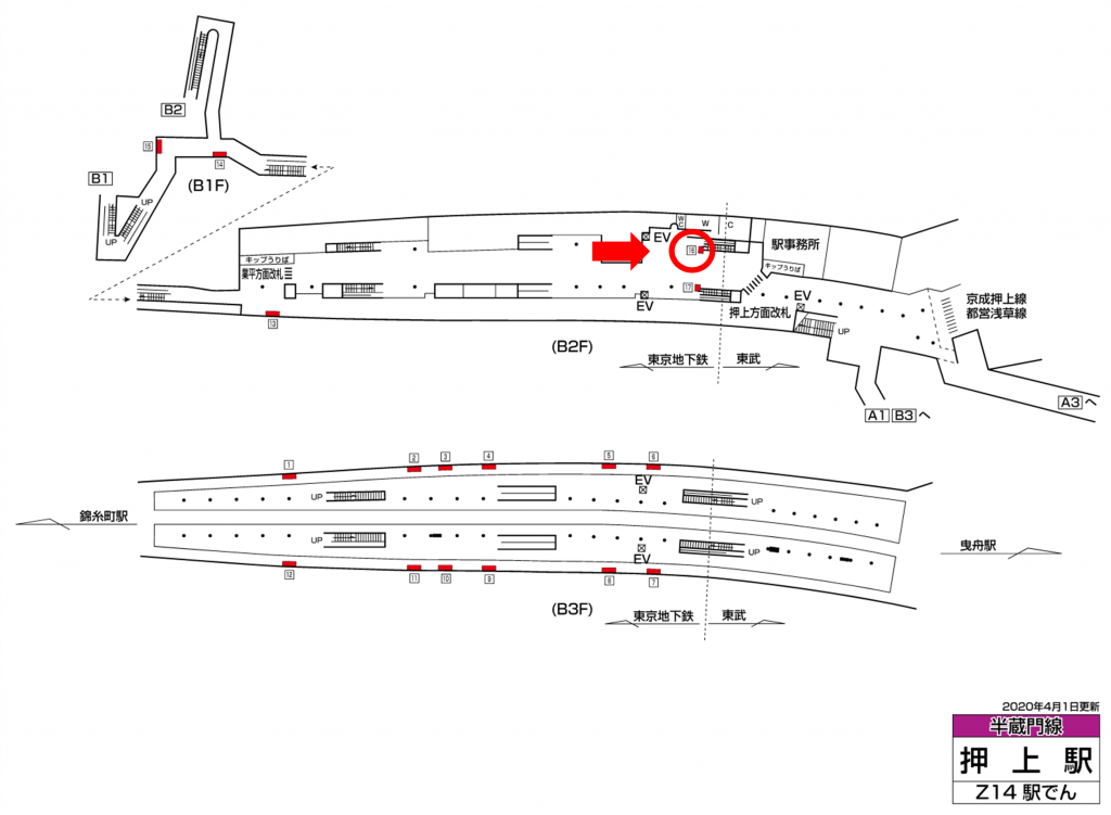 東京メトロ押上駅は一日の乗降客数が147,642人、半蔵門線が発着する駅です。