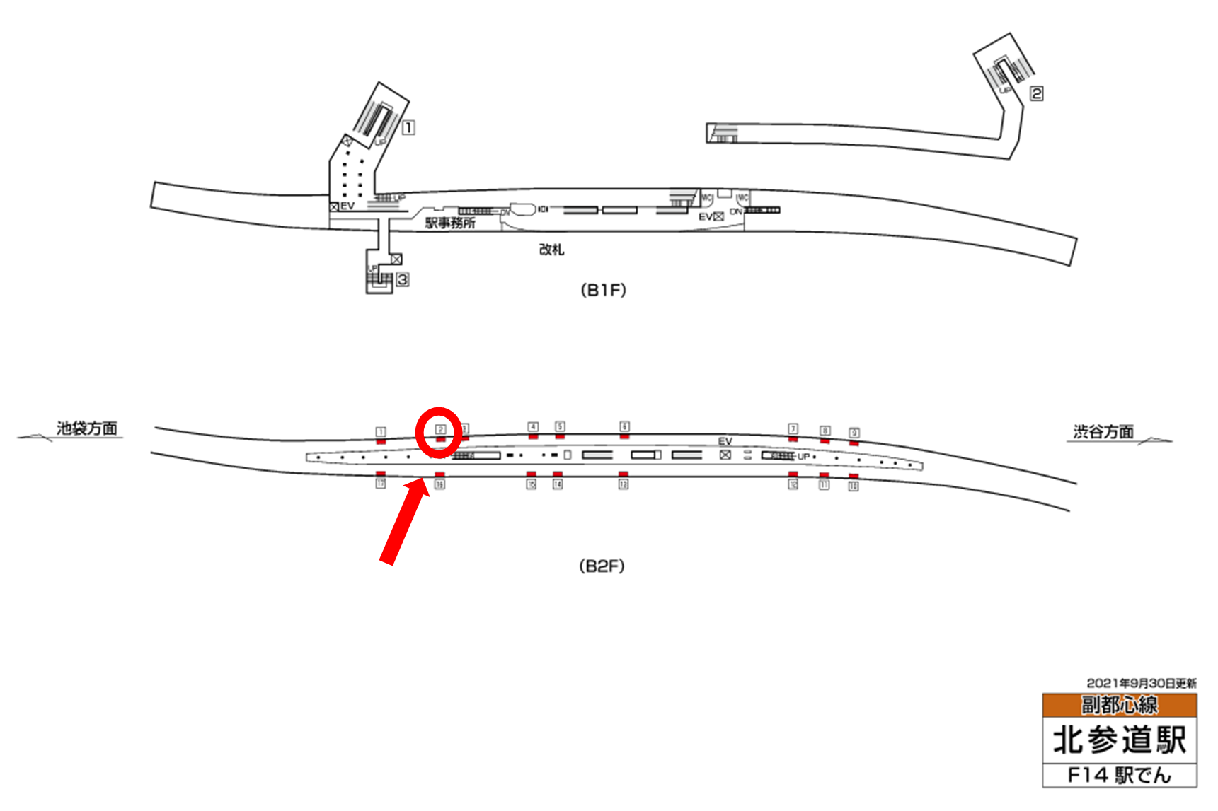 東京メトロ北参道駅は一日の乗降客数が18,327人、副都心線が発着する駅です。