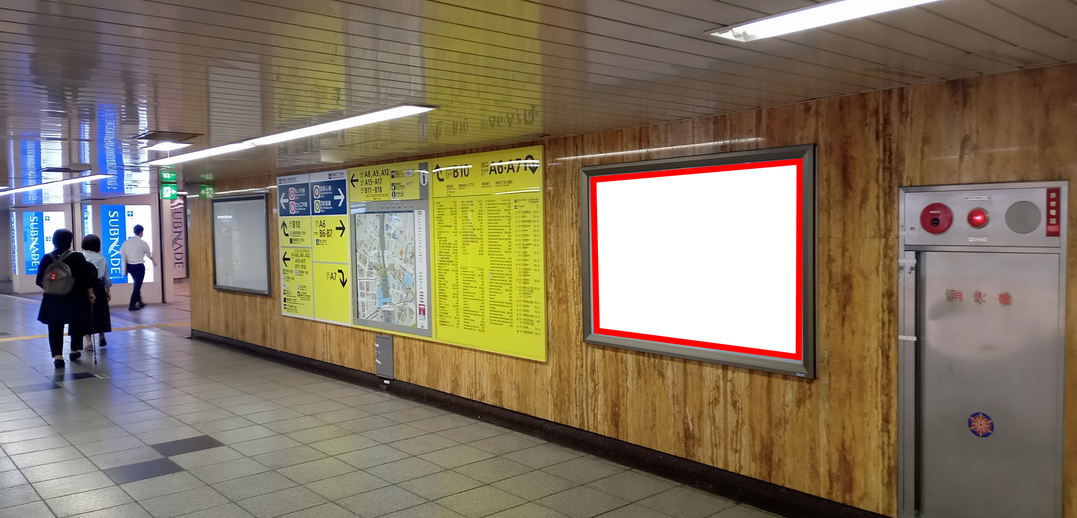 ■設置されている位置はA6・A7出口付近で西武新宿線、新宿駅への通路サブナード商店街入口で多くの方がご覧になります。
