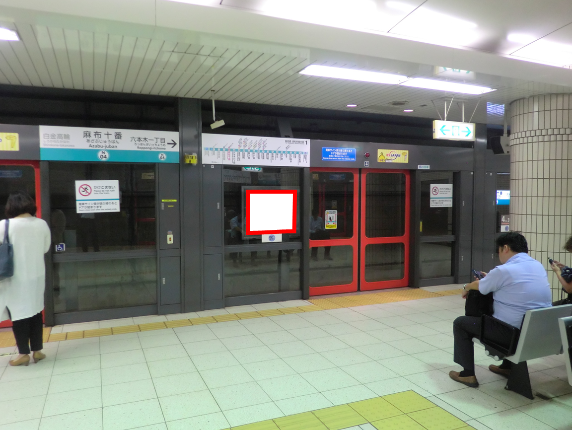 東京メトロ南北線麻布十番駅の六本木一丁目方面ホーム前に設置された看板です。