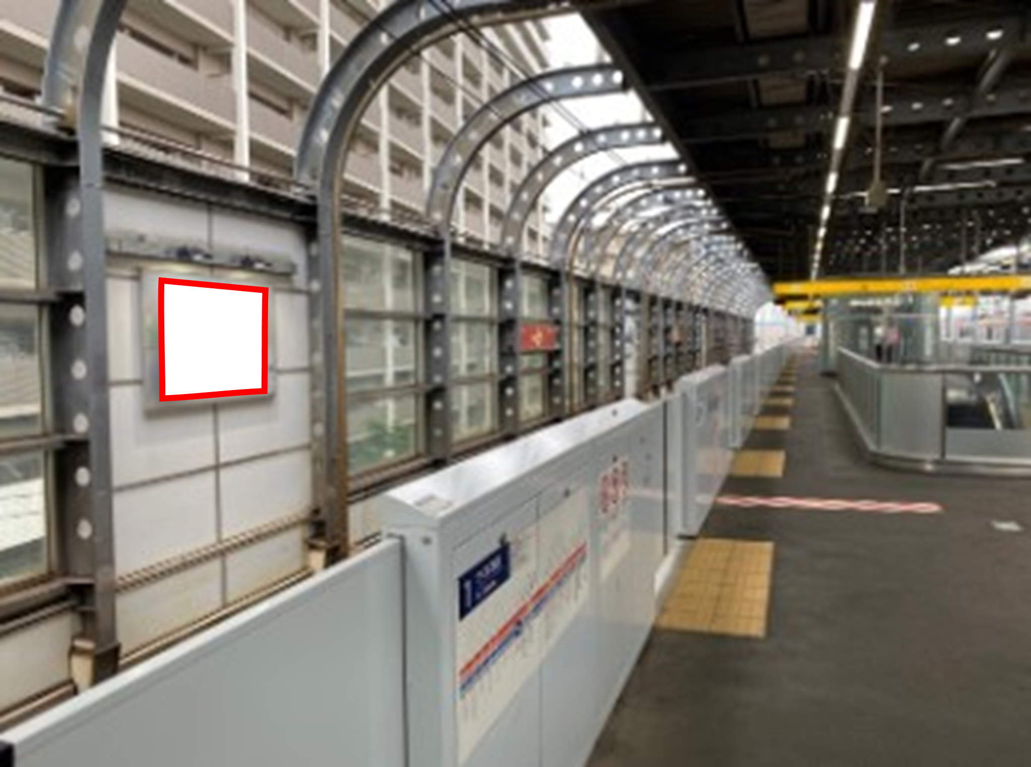 ■ホーム中央、エスカレーター付近にあり多くの方にご覧いただける視認性の高い看板です。