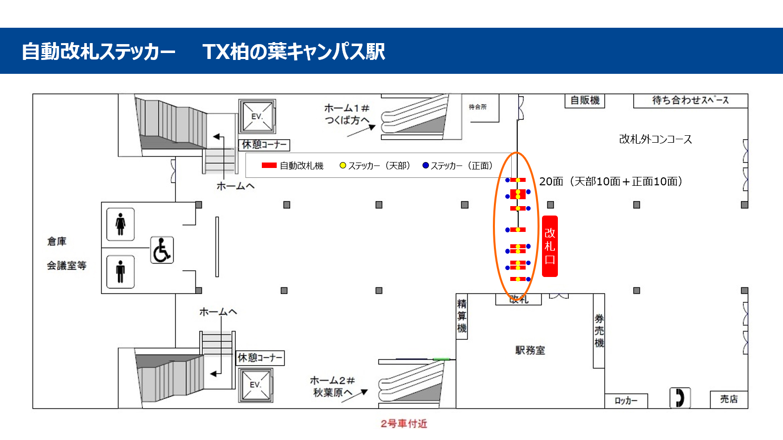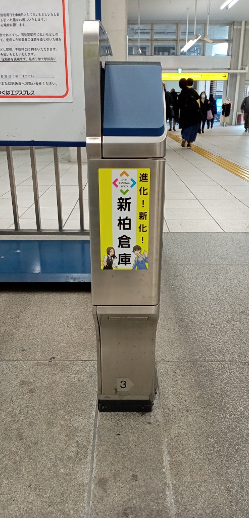 つくばエクスプレス線、柏の葉キャンパス駅の自動改札機に貼られたステッカーです。