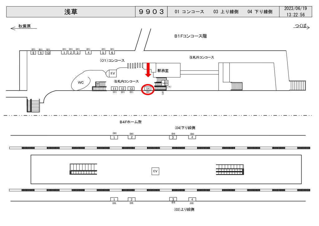 つくばエクスプレス(TX)浅草駅改札正面壁面に設置された看板です。