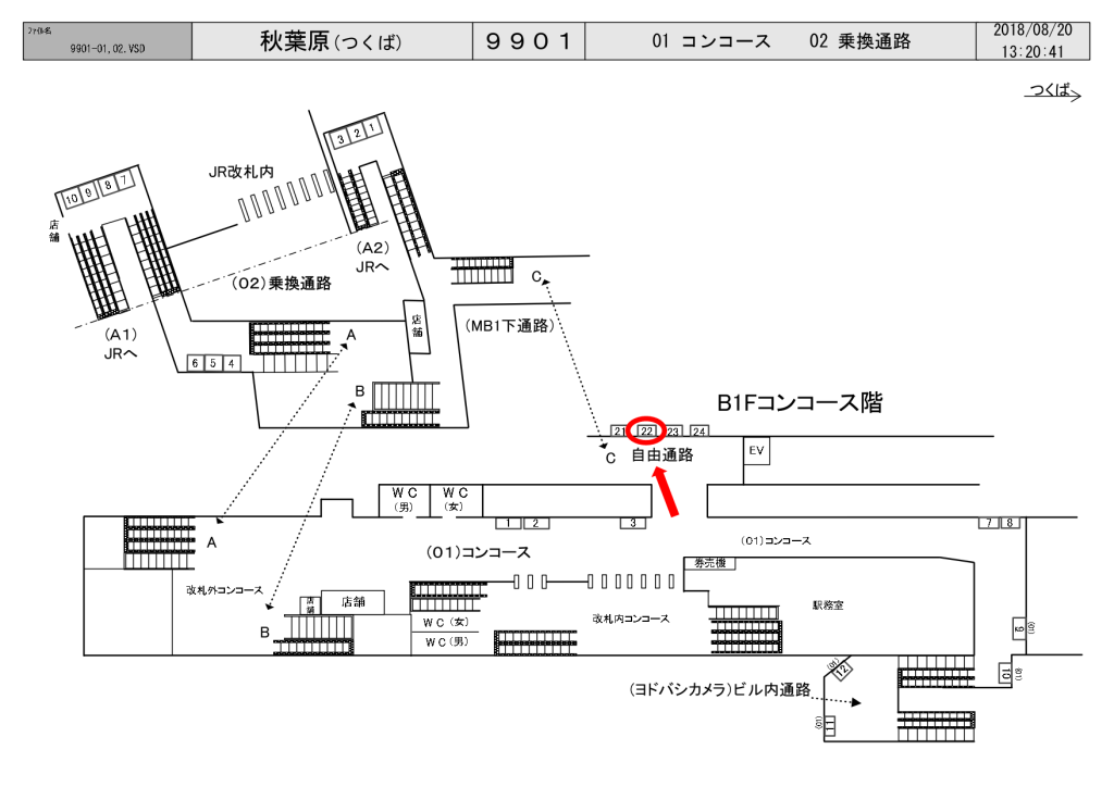 つくばエクスプレス(TX)秋葉原駅の改札外コンコースの自由通路に設置されている電飾看板です。