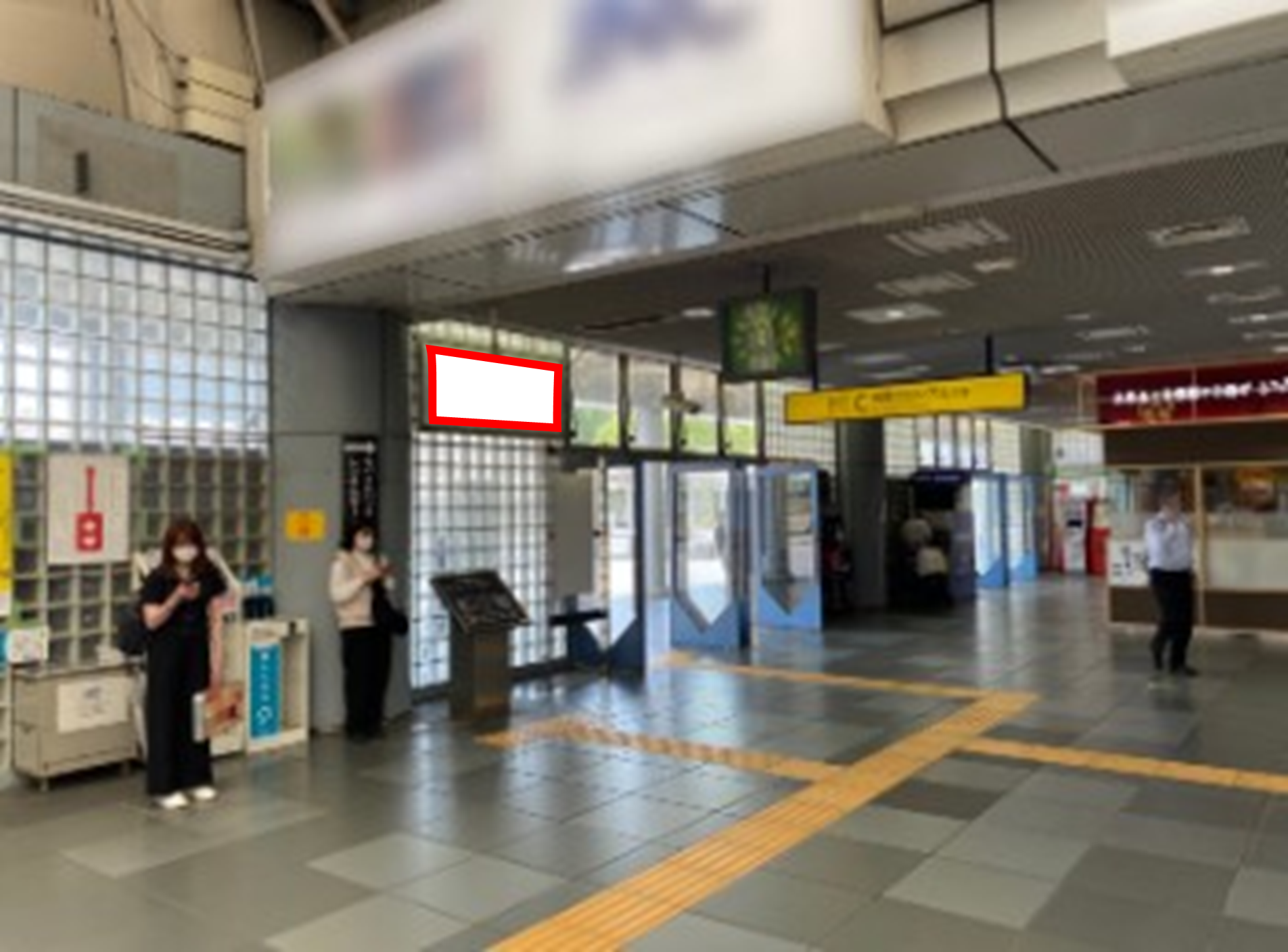■改札横の券売機前の壁面にあり多くの方にご覧いただける視認性の高い看板です。