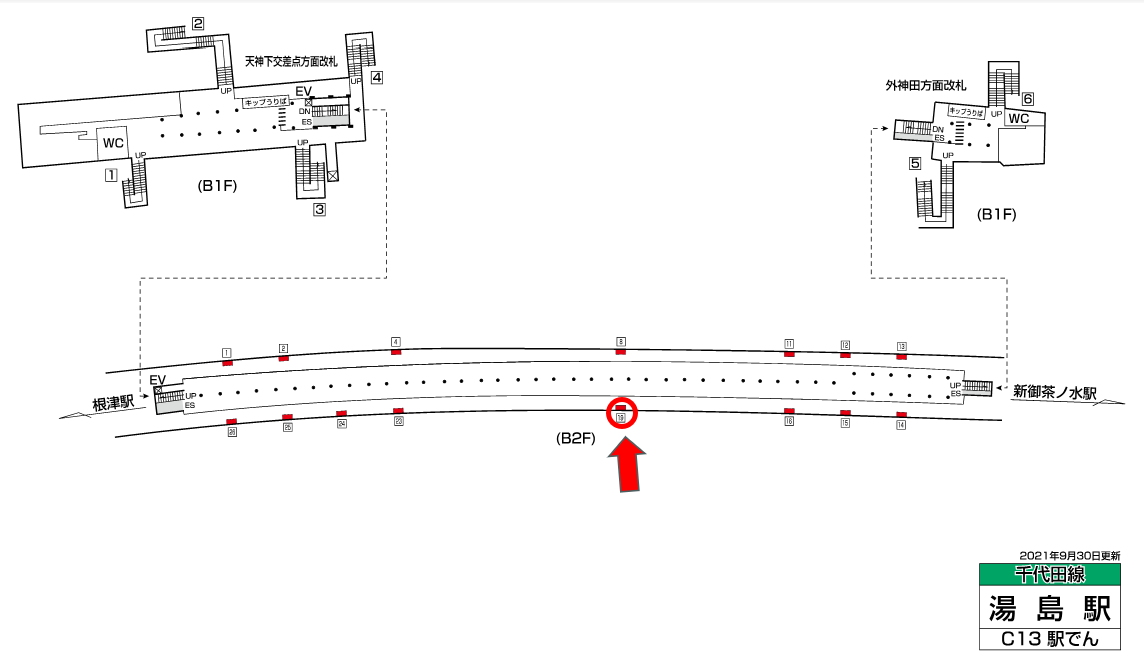 東京メトロ湯島駅は一日の乗降客数が32,807人、東京メトロ千代田線が発着する駅です。
