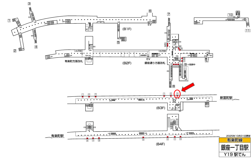 東京メトロ銀座一丁目駅は一日の乗降客数が33,836人、東京メトロ有楽町線が発着する駅です。