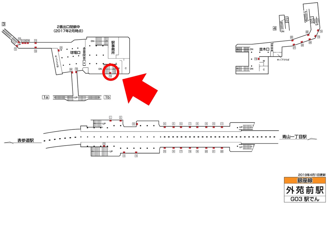 東京メトロ外苑前駅は一日の乗降客数が74,123人、銀座線が発着する駅です。