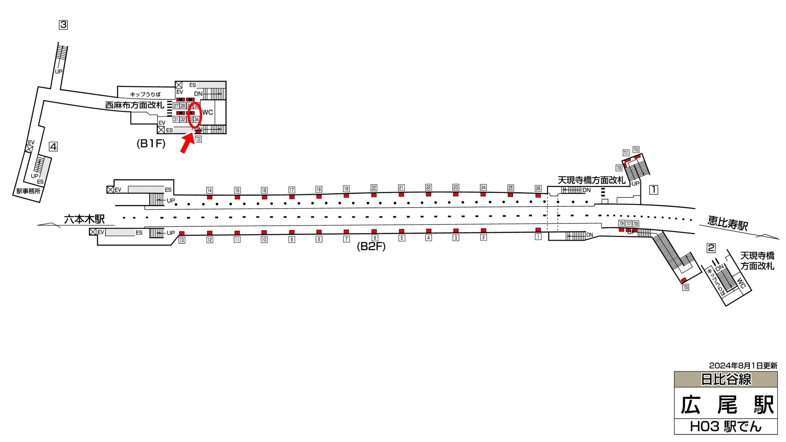 東京メトロ日比谷線 広尾駅の改札内、西麻布方面改札前に設置された看板です。