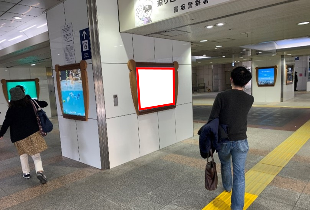 ■改札前、切符売り場前の柱面に設置されている大変視認性の高い看板です。