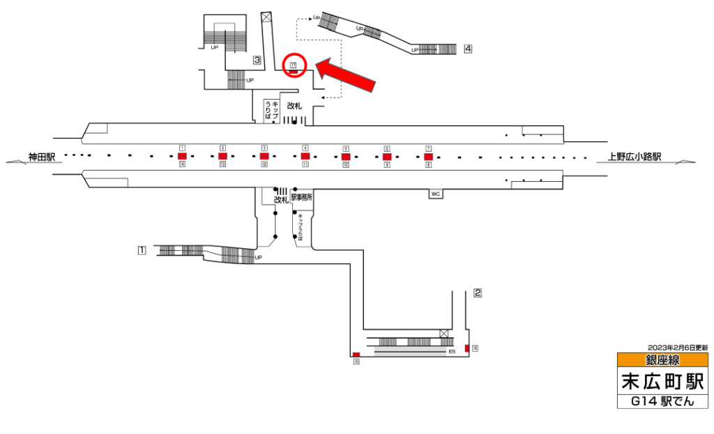 東京メトロ末広町駅は一日の乗降客数が20,916人、銀座線が発着する駅です。