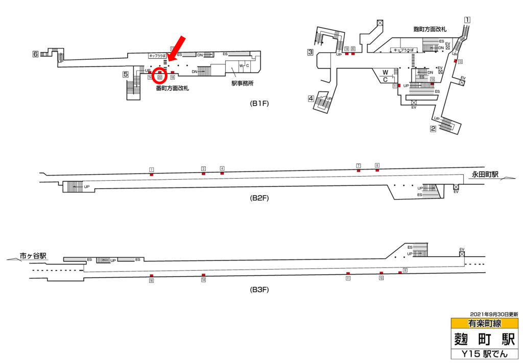 東京メトロ有楽町線麹町駅の番町方面改札出口横に設置された看板です。