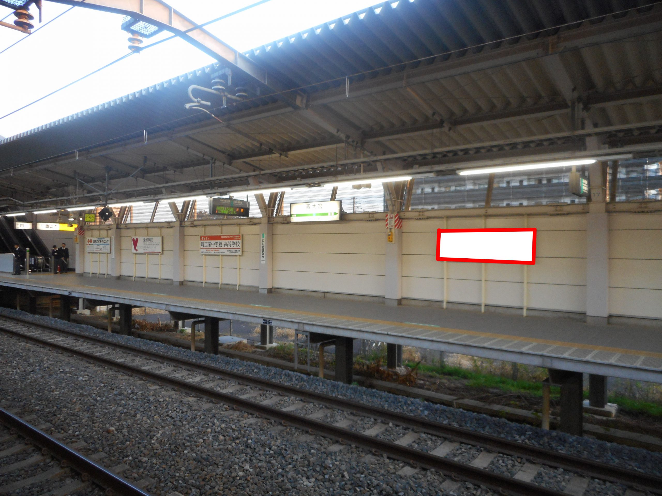 JR西大宮の下り(川越方面)ホーム上の看板です。