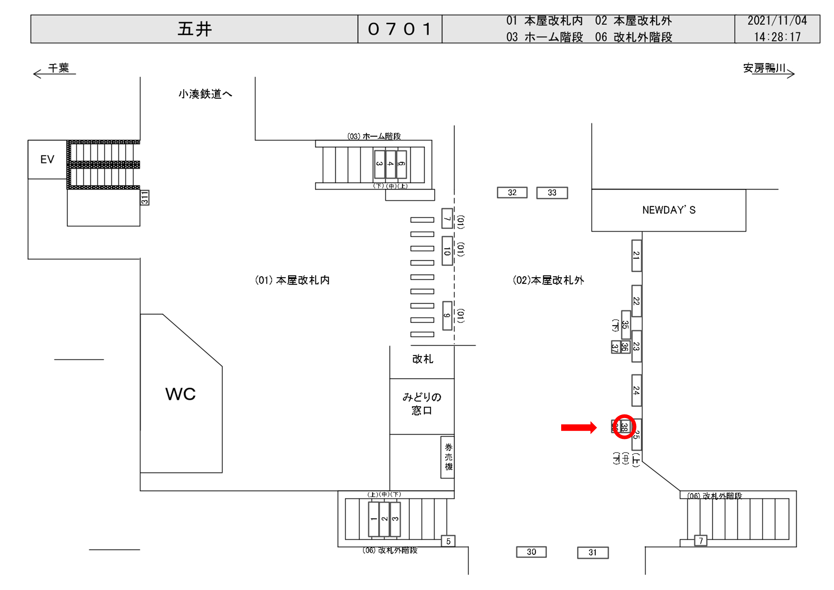 JR五井駅は一日の乗降客数が36,664人、内房線・京葉線・総武線が発着する駅です。