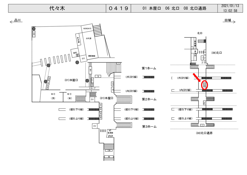 JR代々木駅 北口改札内北口通路横壁面に設置された看板です。