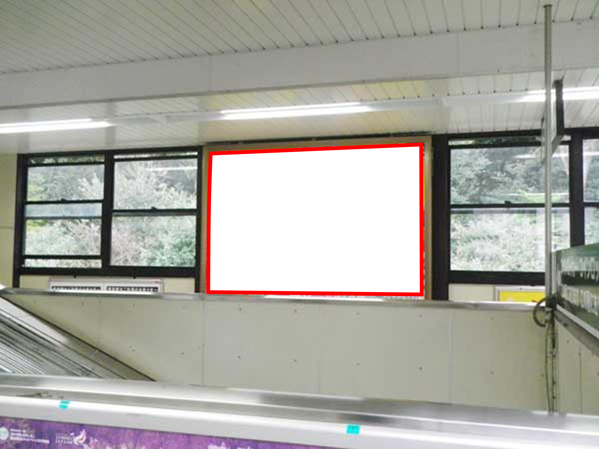 JR原宿駅の改札内、内回りホームエスカレーター横壁面に設置されている看板です。