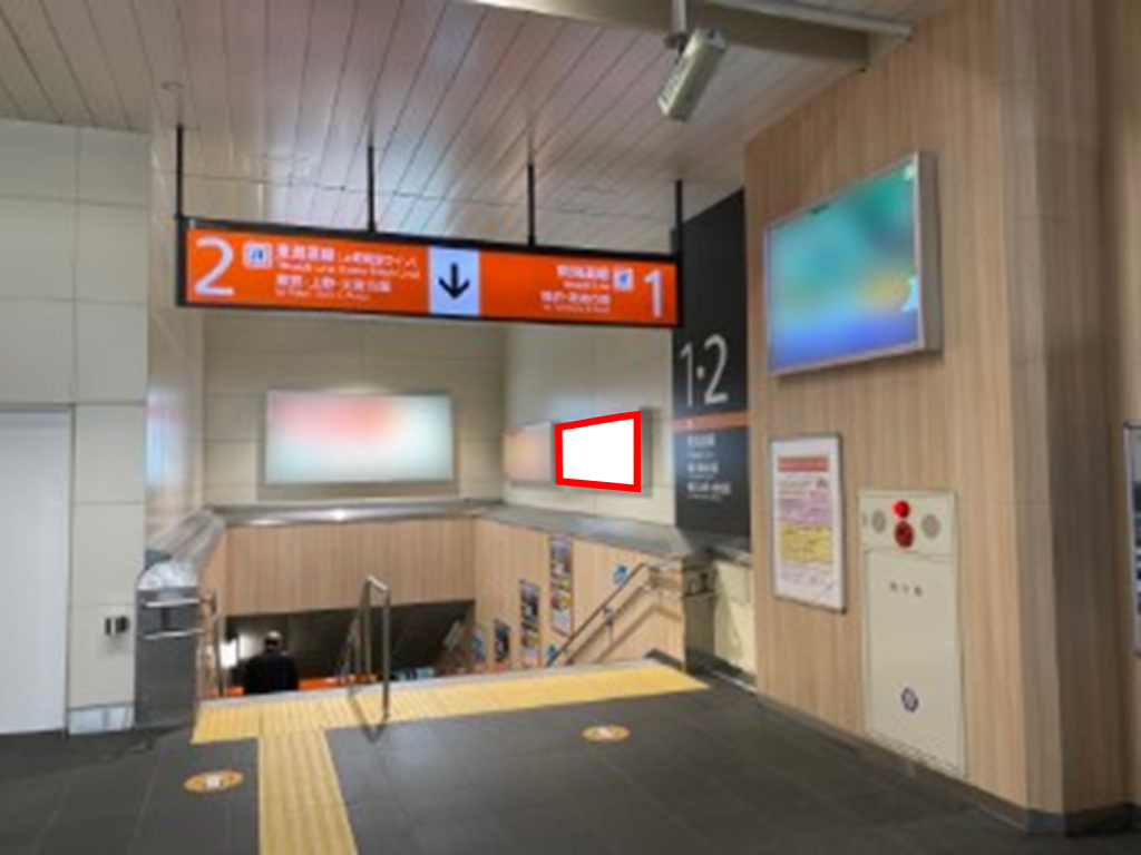 JR川崎駅の中央南改札内、1・2番線ホーム階段横壁面に設置されている看板です。