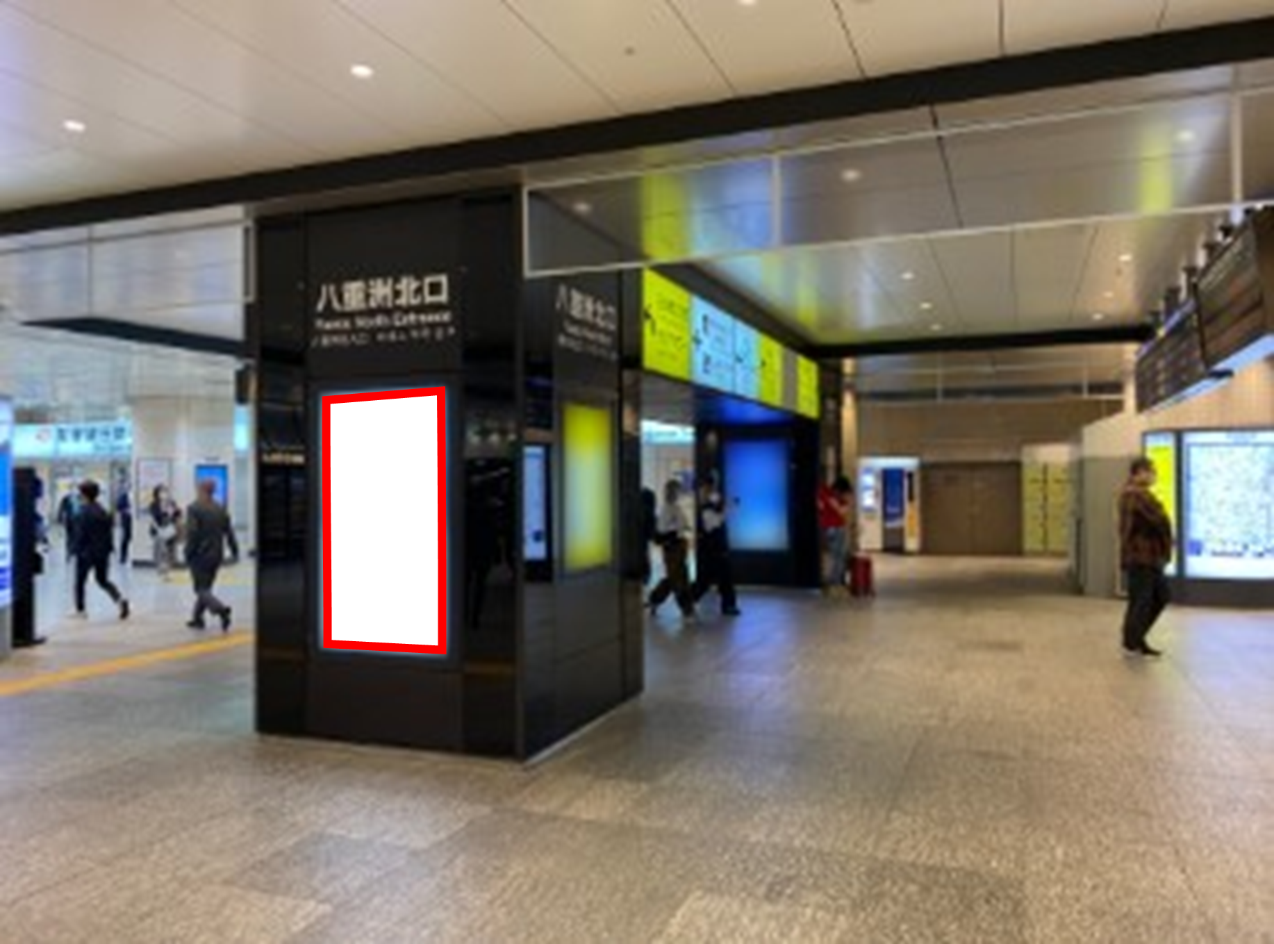JR東京駅改札外、八重洲北口改札前の通路柱面に設置された看板のご案内です。
