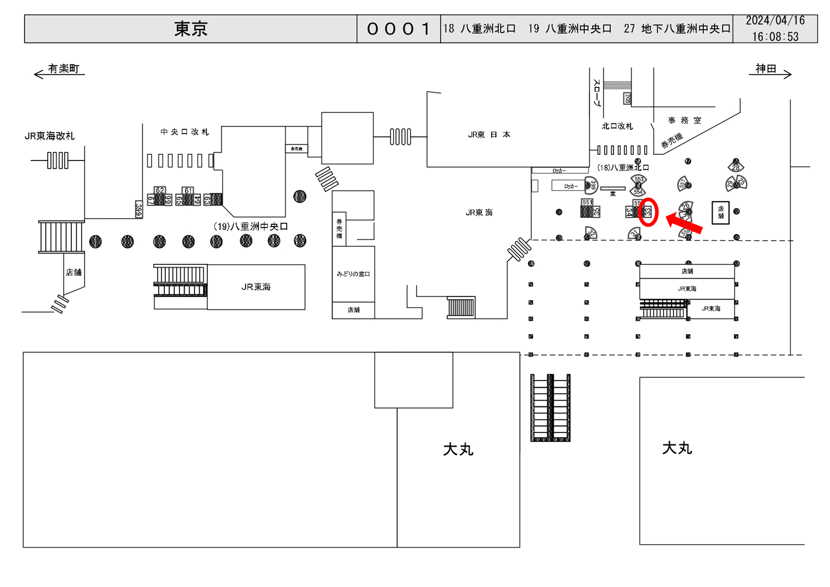 丸の内ビルディング(丸ビル)、丸ノ内オアゾ、八重洲地下街などに近く、
