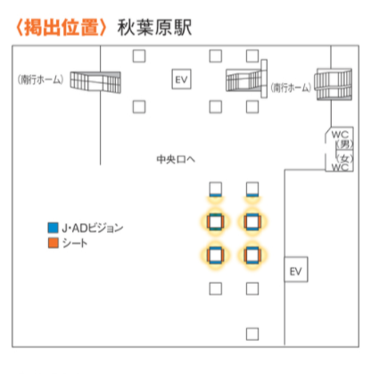 JR秋葉原駅、電気街口改札内に設置されている電照デジタルシートセットの広告媒体のご案内です。