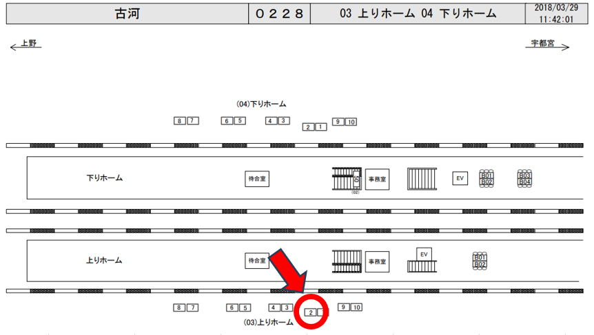 ■上りホーム 大宮・新宿・東京方面行きのお客様がご覧になられます。