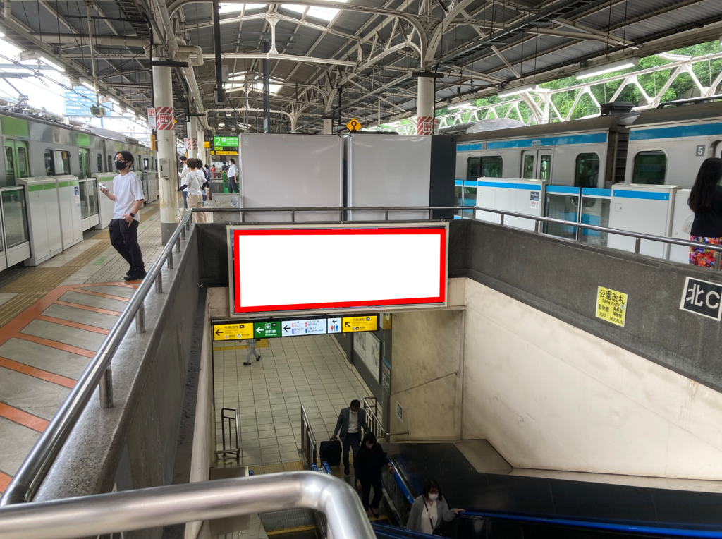 ■ご利用人数の多い中央改札口に近いエスカレーターの目立つ場所に設置されていますので、非常に注目度が高い看板です。