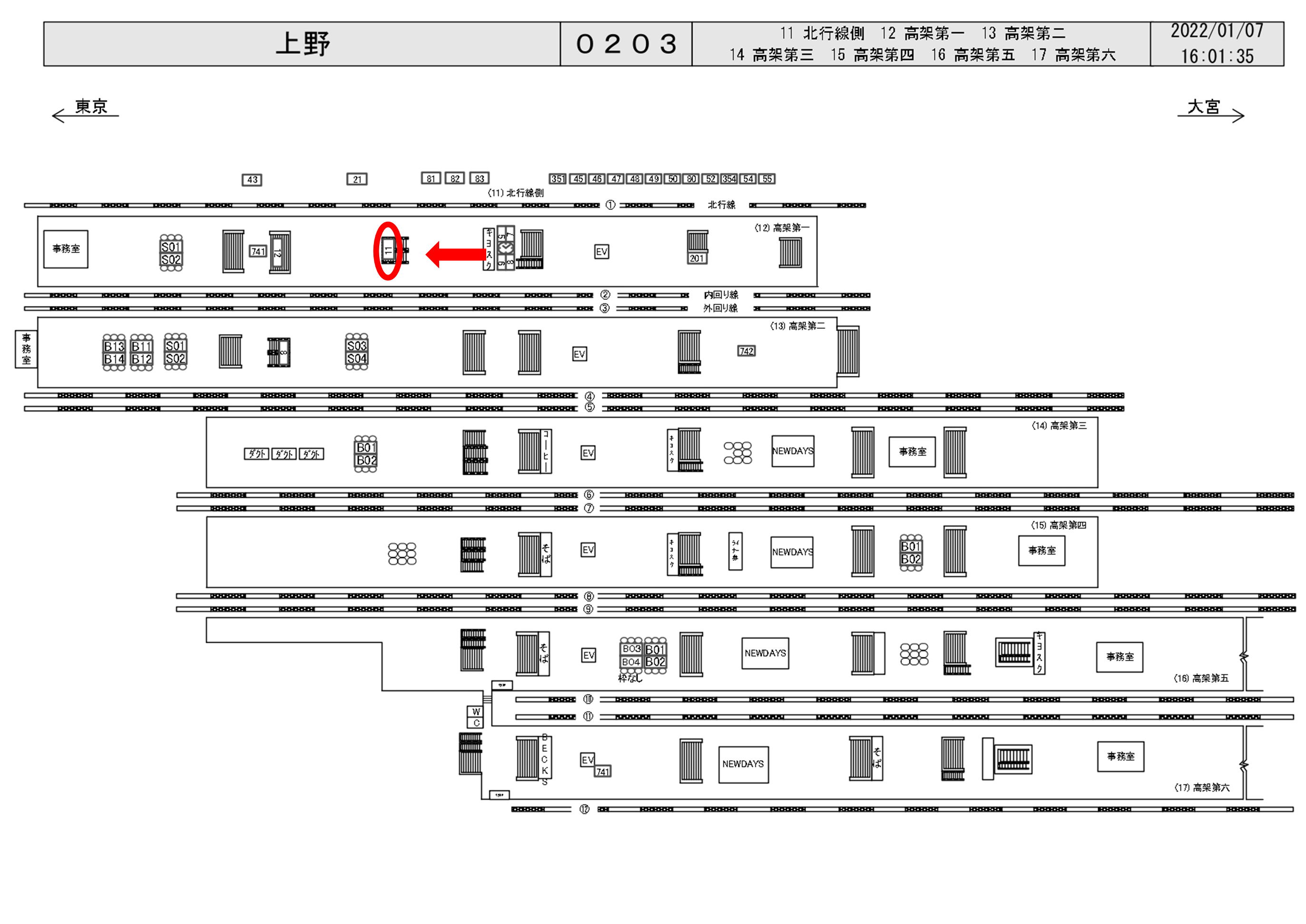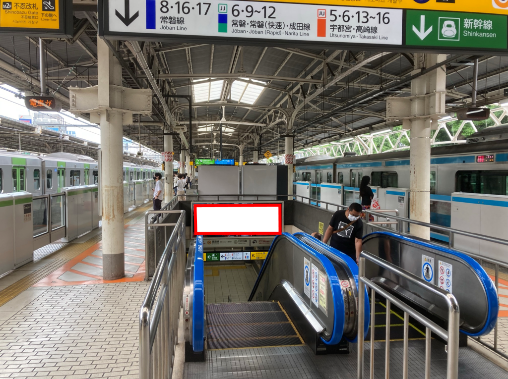 JR上野駅の山手線(内回り)・京浜東北線(大宮方面)ホーム上、エスカレーター正面の特額看板のご案内です。
