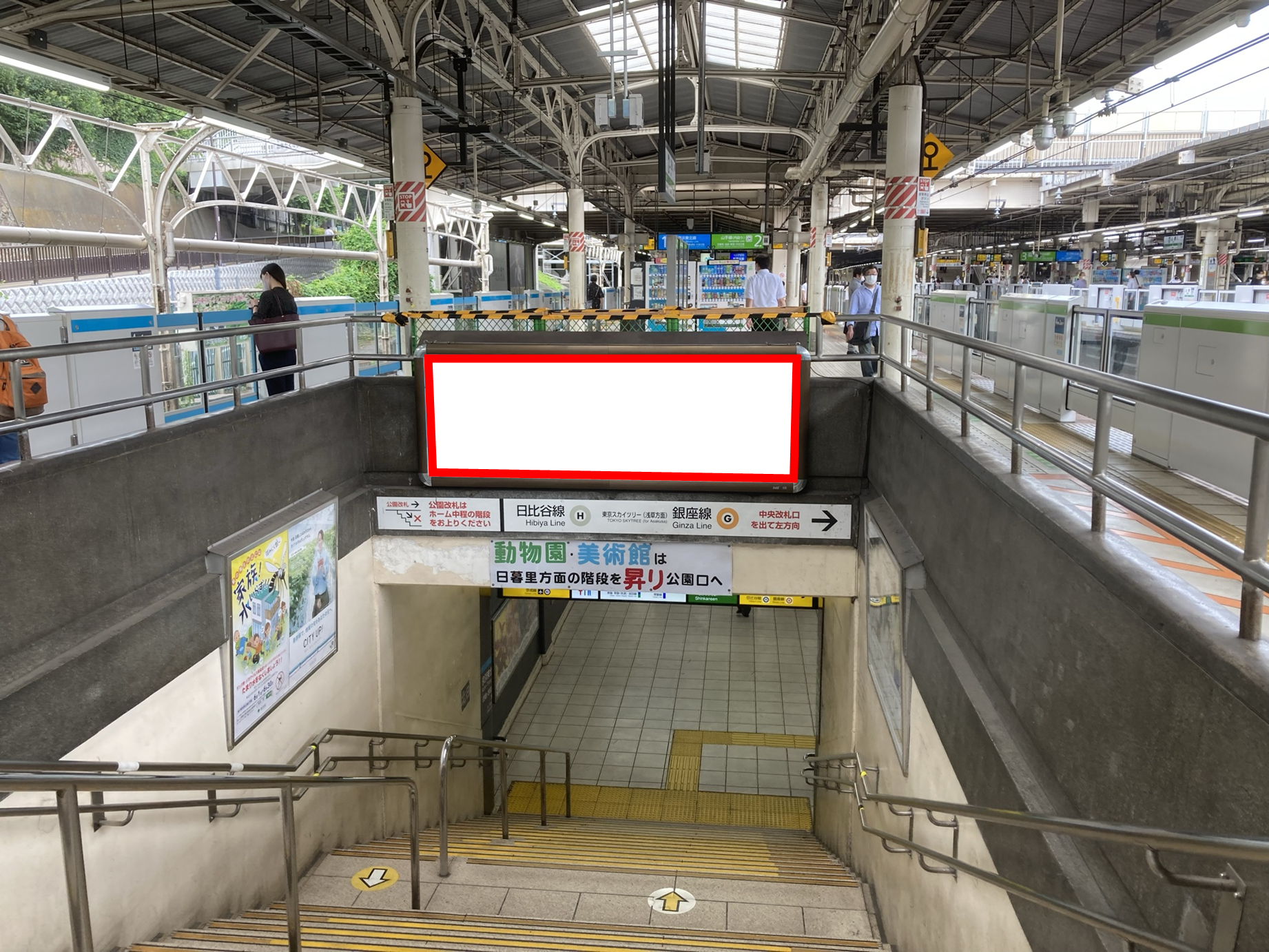 JR上野駅の山手線(内回り)・京浜東北線(大宮方面)ホーム階段正面の特額看板のご案内です。