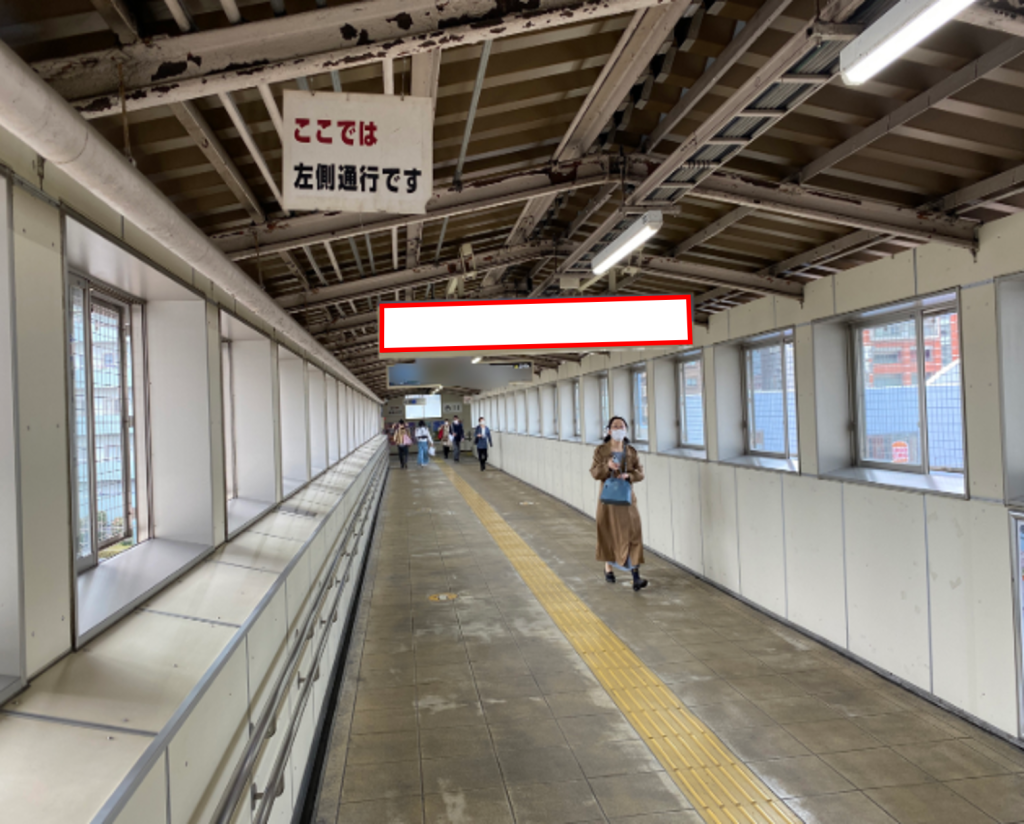 JR与野駅の改札外、西口に向かう通路上部に設置された看板です。