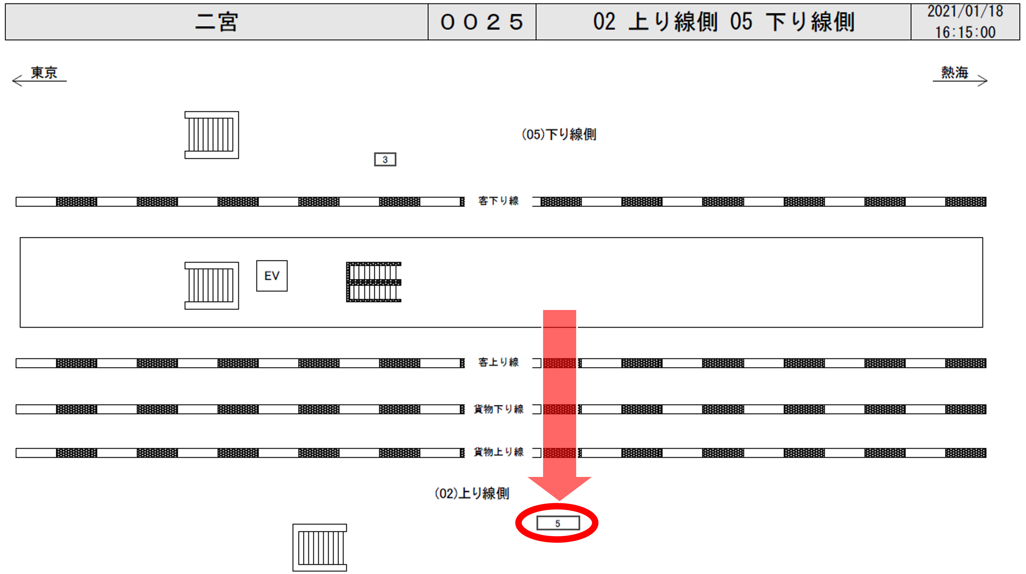 JR二宮駅、上りホーム前(横浜・品川・東京・上野・渋谷・新宿方面)に設置された看板のご案内です。