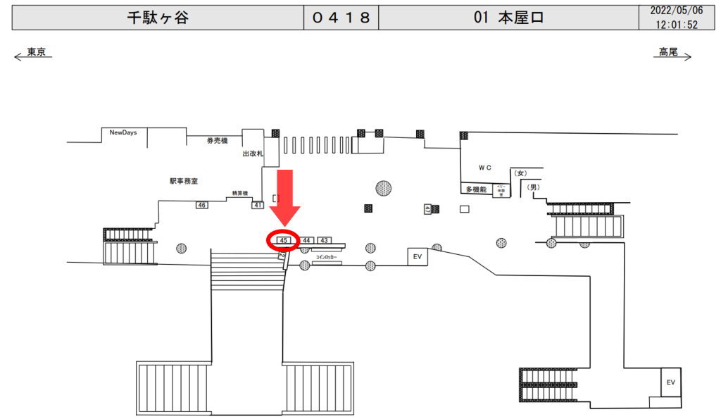 JR中央・総武線各駅停車 千駄ヶ谷駅の改札内、改札正面に設置された看板です。