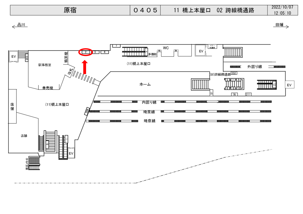 JR原宿駅の改札前の改札内通路正面上に設置されている看板です。