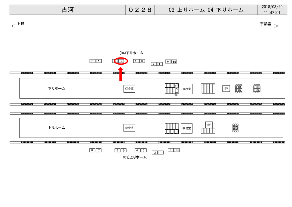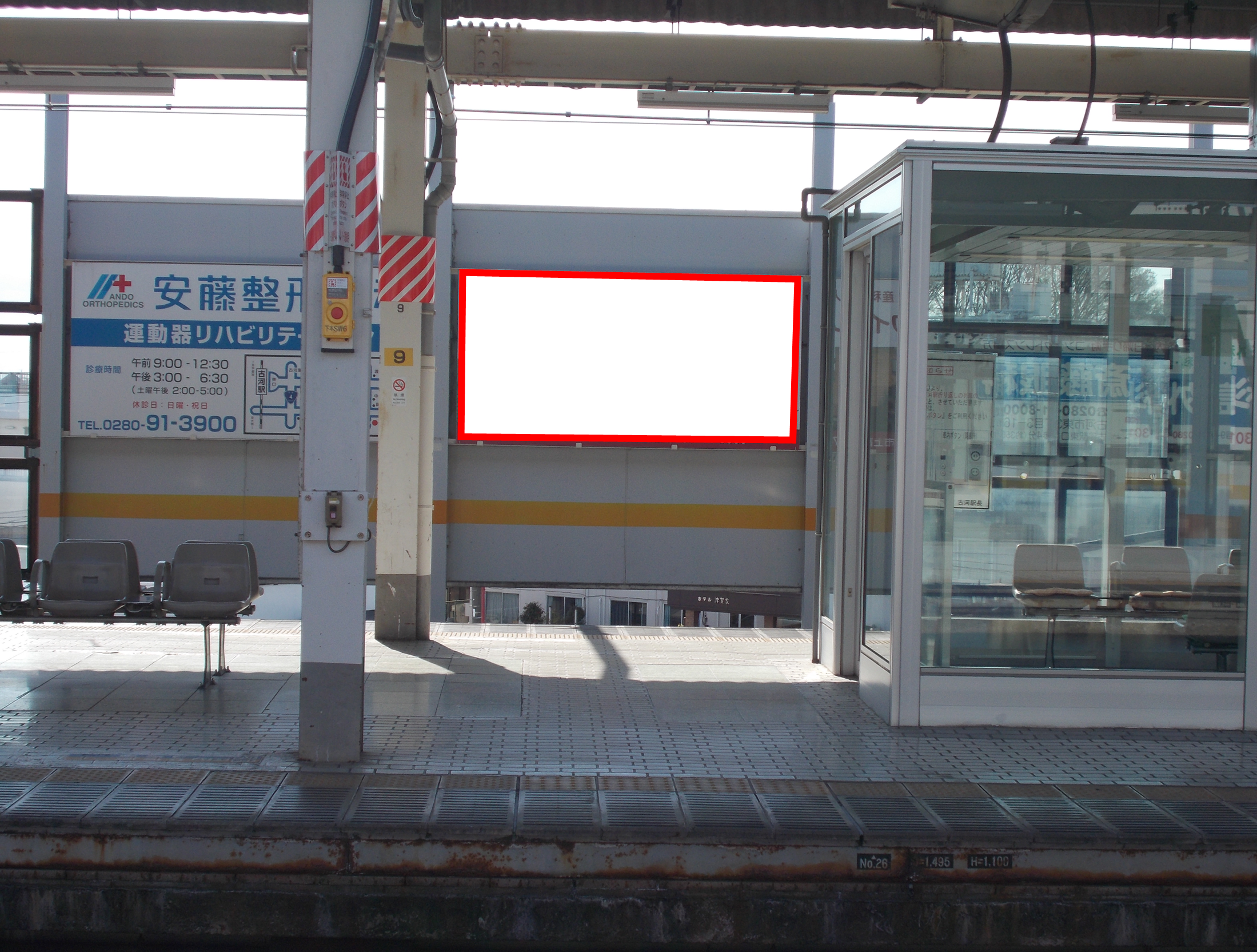 JR古河駅の下りホーム前(小山・宇都宮・黒磯方面)に設置されている看板です。