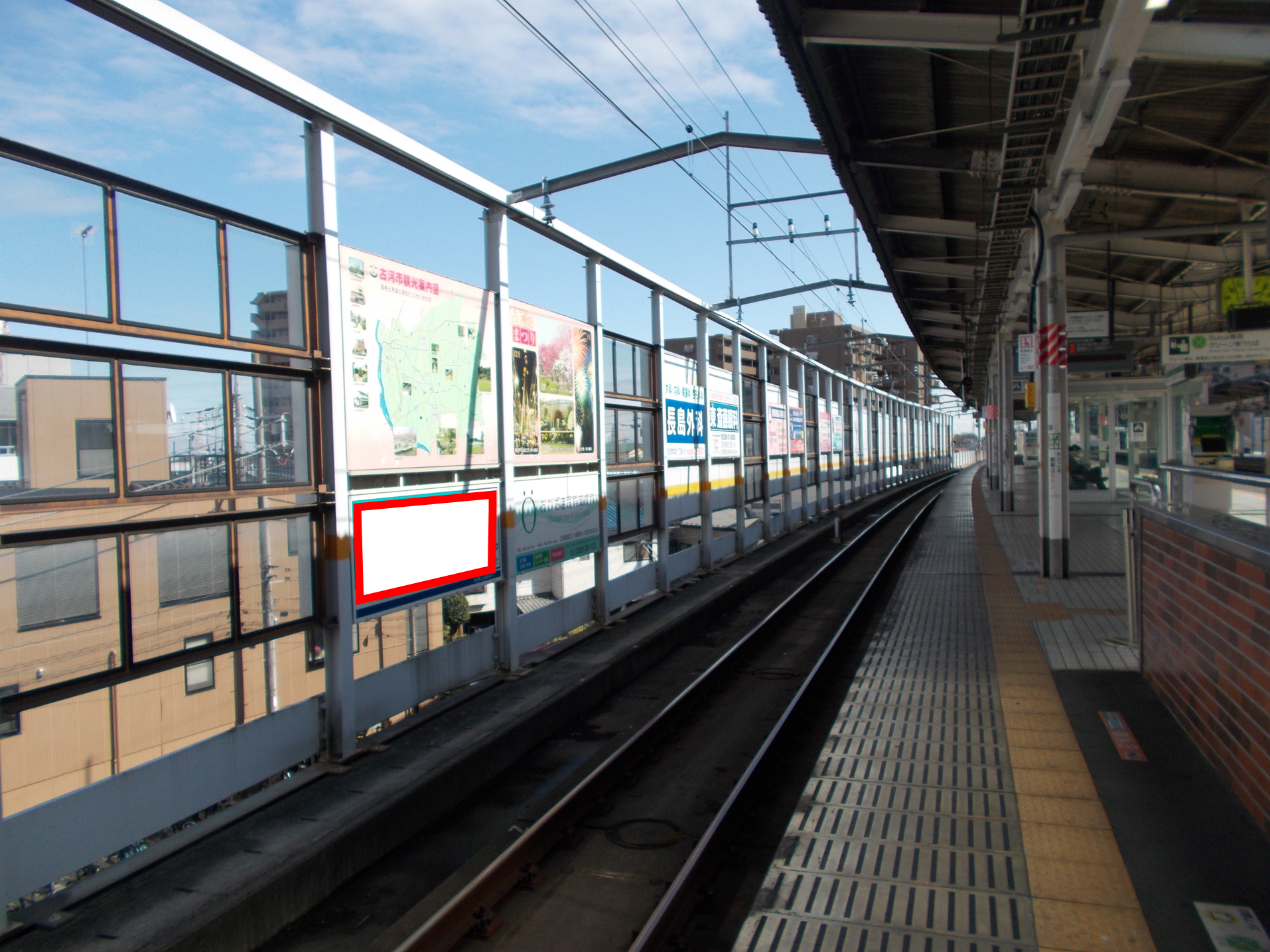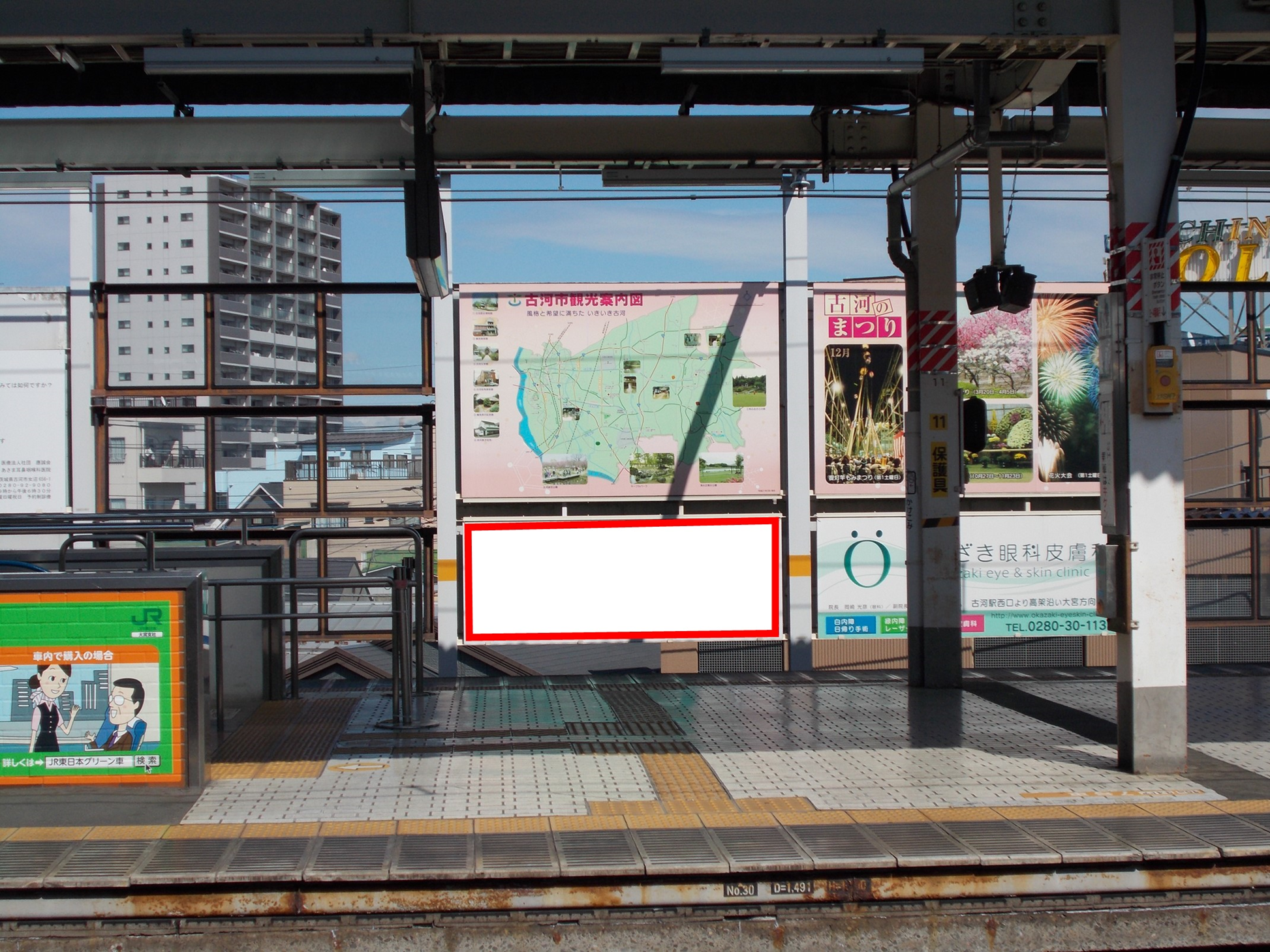 JR古河駅(宇都宮線)の上りホーム前に設置されている看板です。