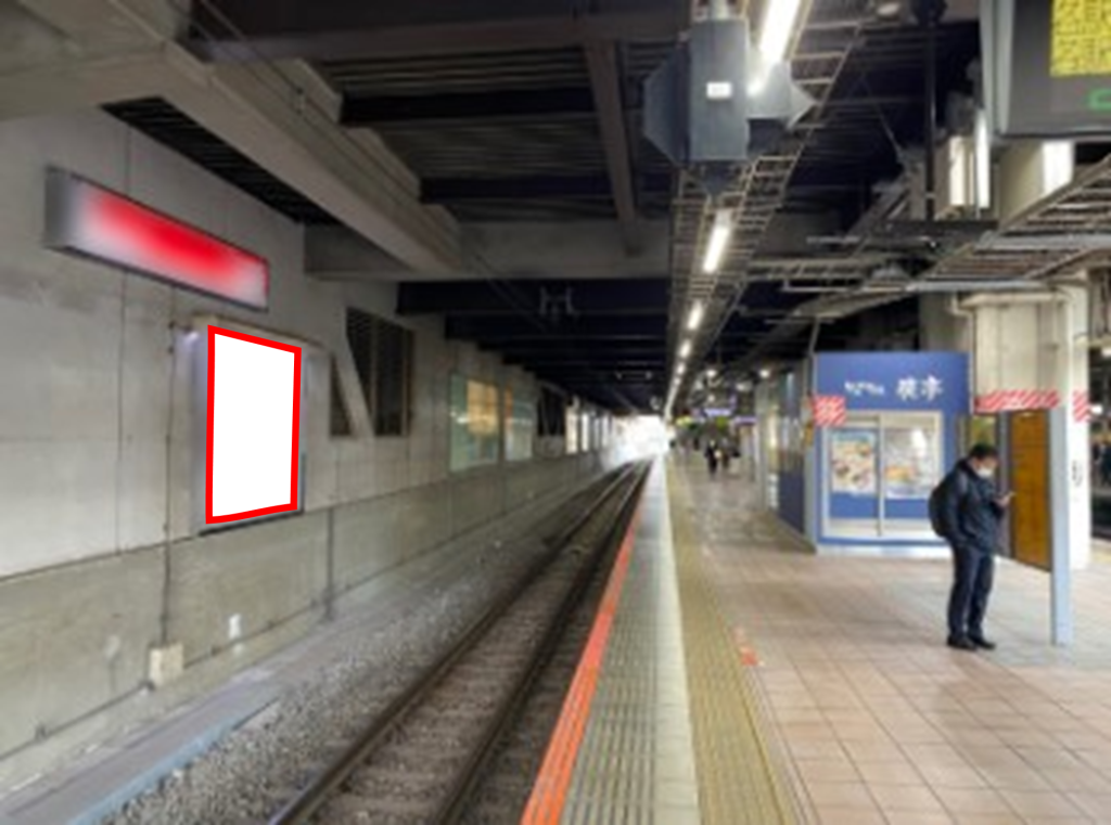 ■ホームのKiosk、そば屋の前にあるサイズ縦2.6m×横3mの視認性の高い看板です。