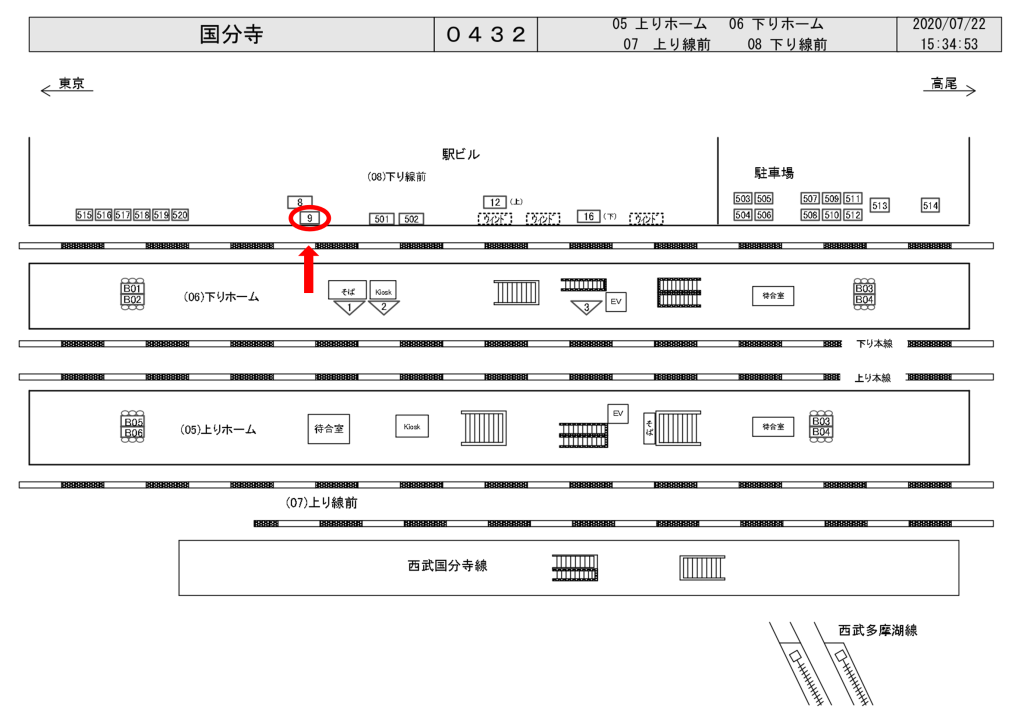 JR国分寺駅は一日の乗降客数が209,462人、中央線が発着する駅です。