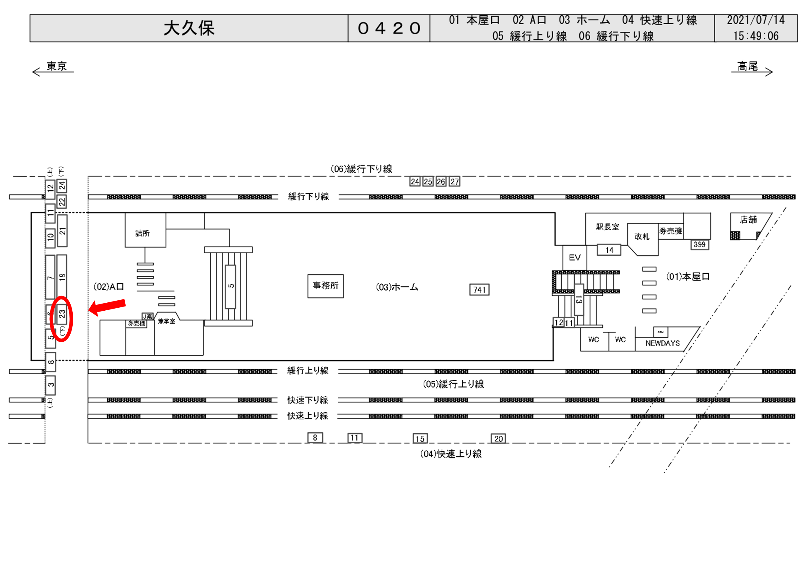 JR大久保駅は一日の乗降客数が48,774人、中央・総武線(各駅停車)が発着する駅です。