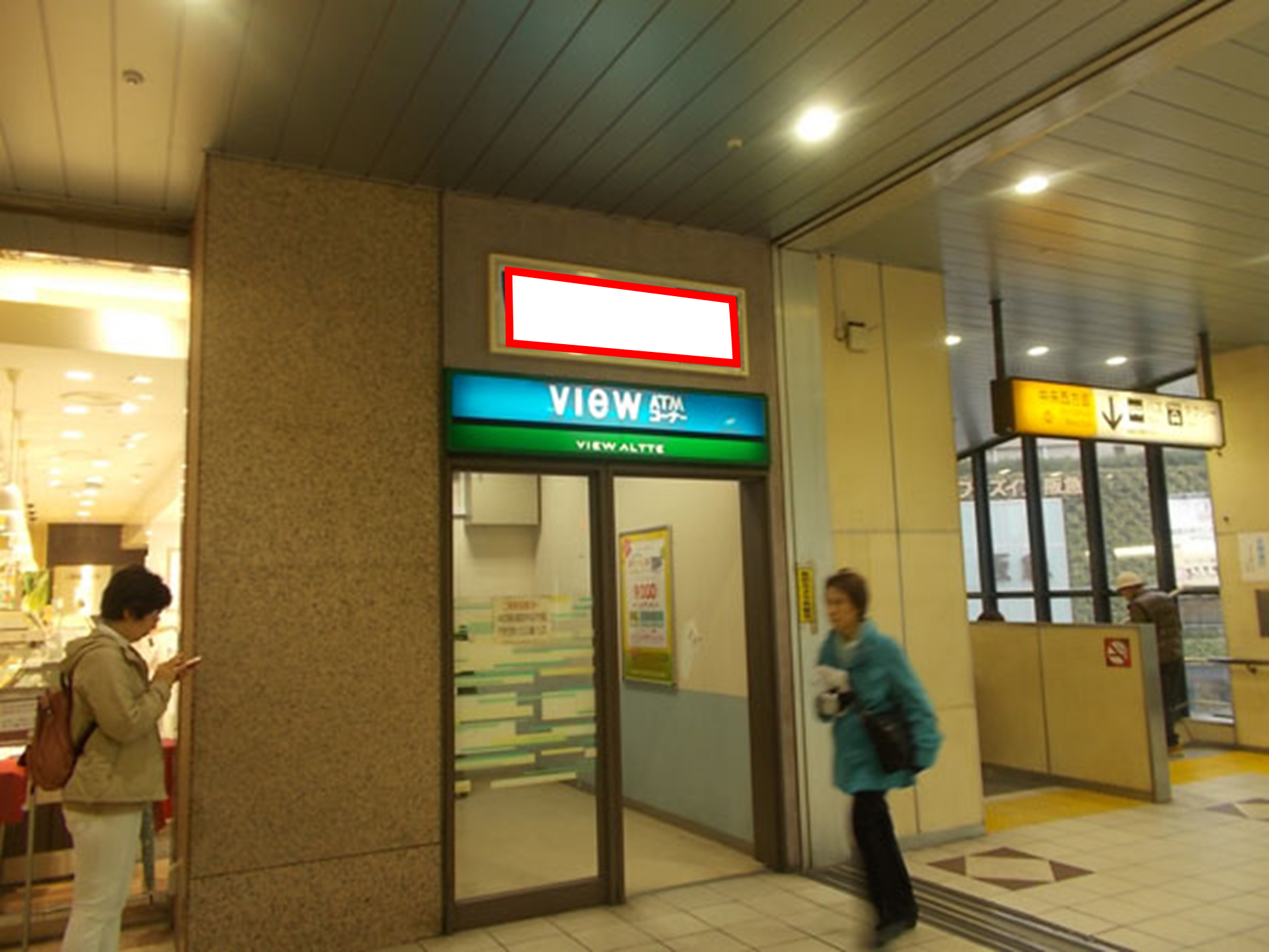 ■自由通路に設置されているATM入口上にあり駅をご利用される多くの方がご覧になる視認性の高い看板です。
