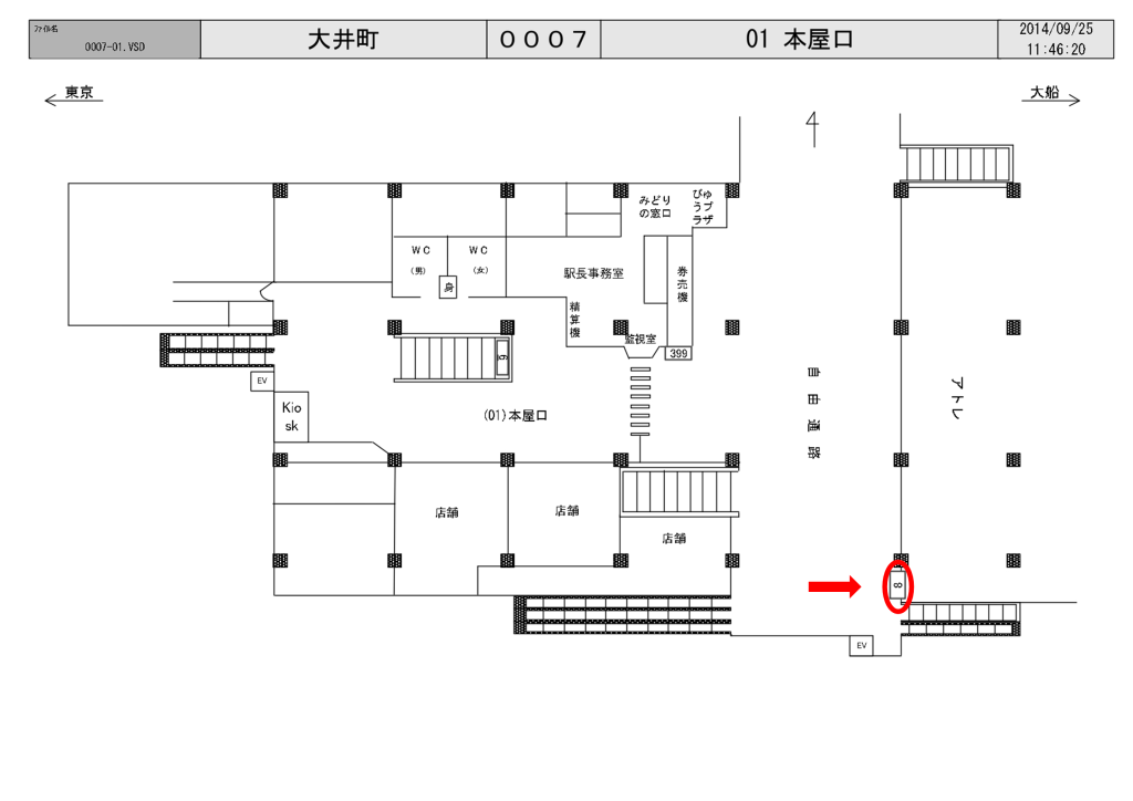 JR大井町駅の中央口改札外の自由通路西口駅前階段横に設置された看板です。