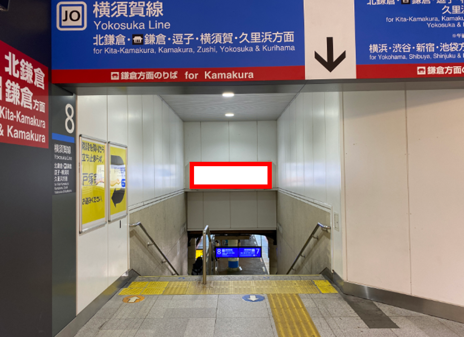 JR大船駅の横須賀線(鎌倉・逗子・横須賀・久里浜方面)ホーム階段正面に設置された電飾看板です。