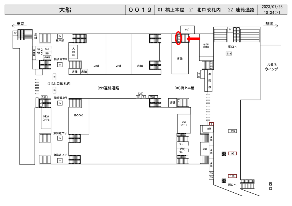 JR大船駅の京浜東北線・根岸線上りホーム階段正面に設置された看板です。