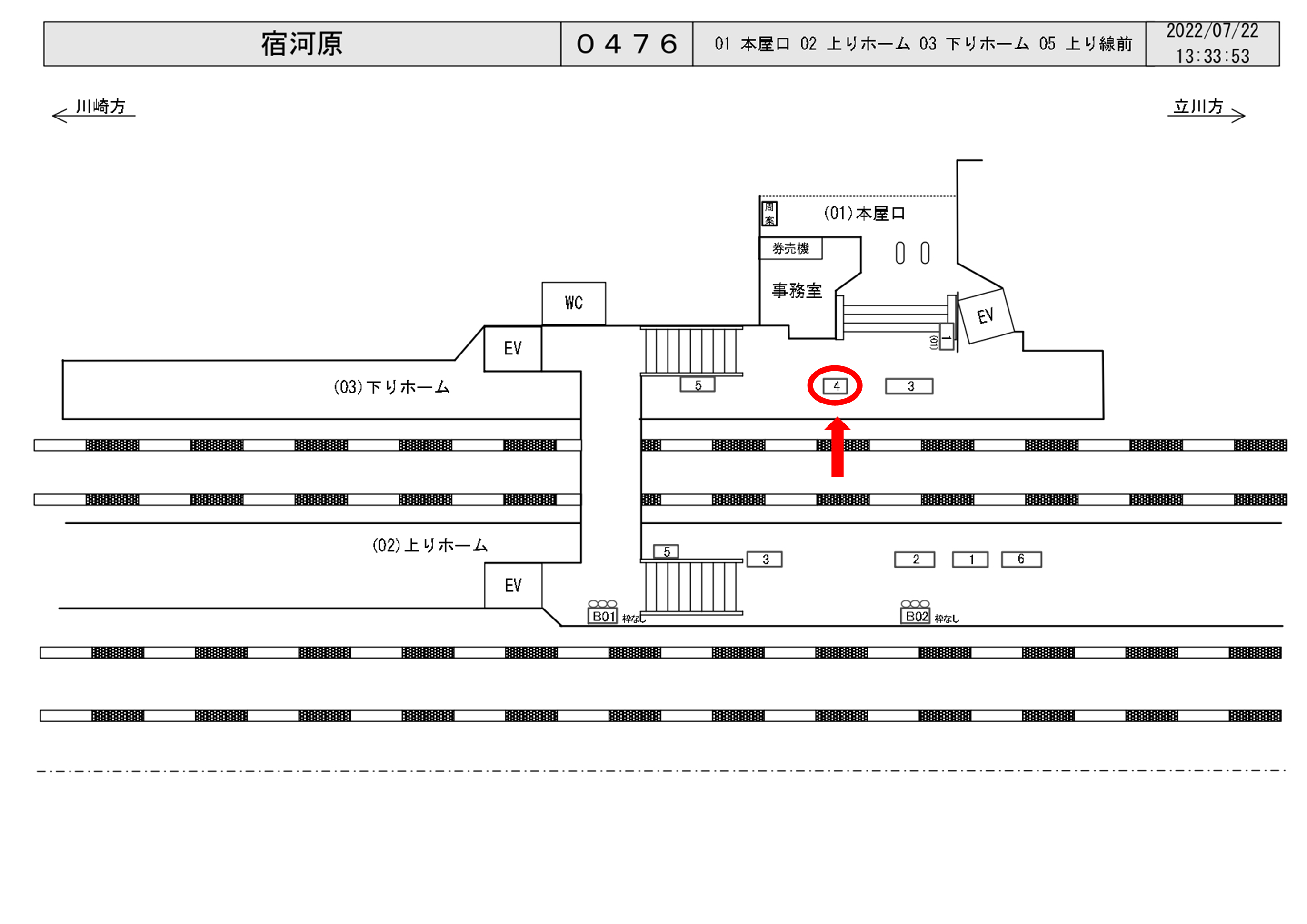 JR南武線、宿河原駅下りホーム(登戸・立川方面)の改札前に設置された看板です。