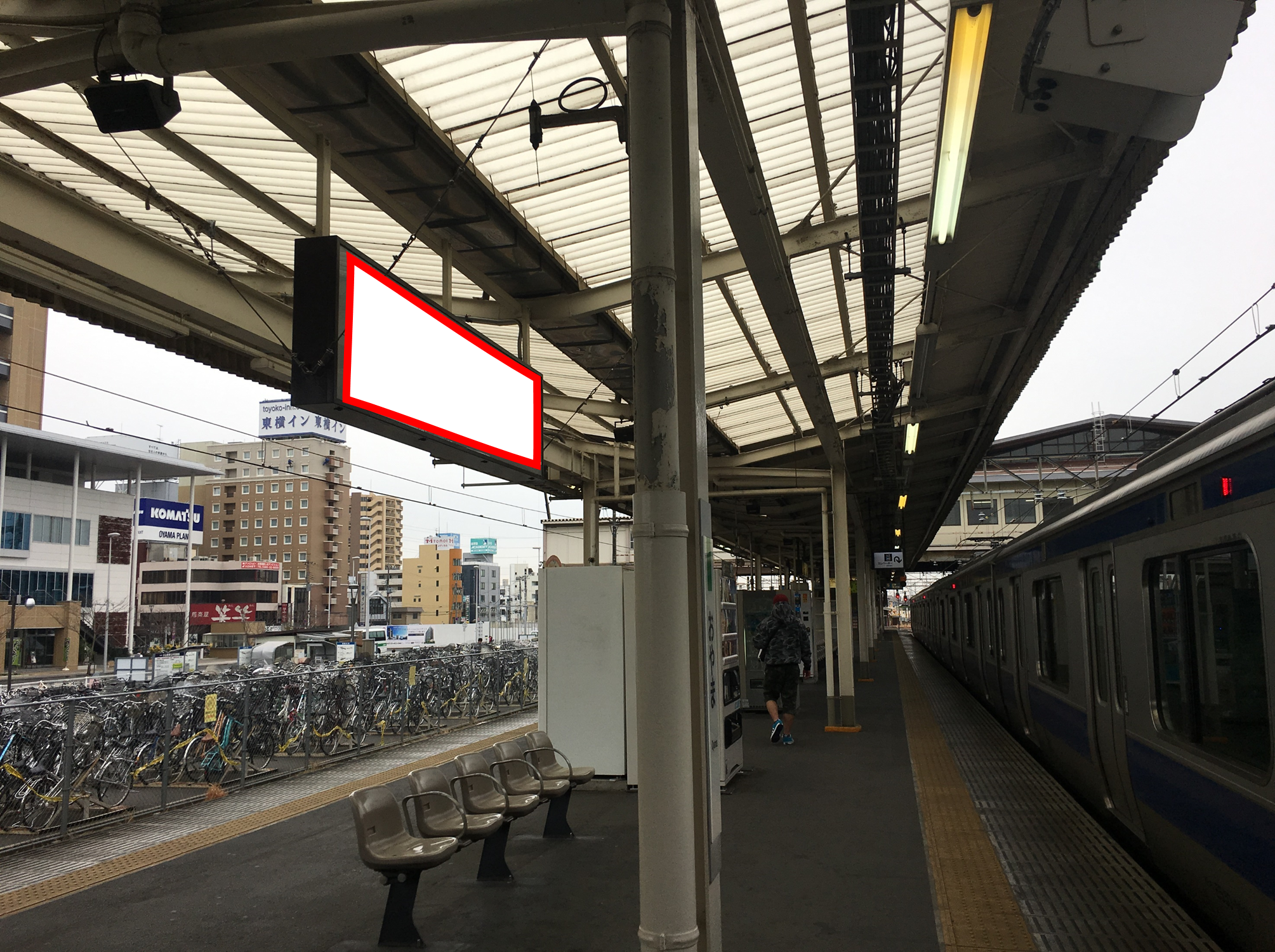 ■隣接する宇都宮線(東北線)の上りホームからもご覧いただける視認性の高い看板です。