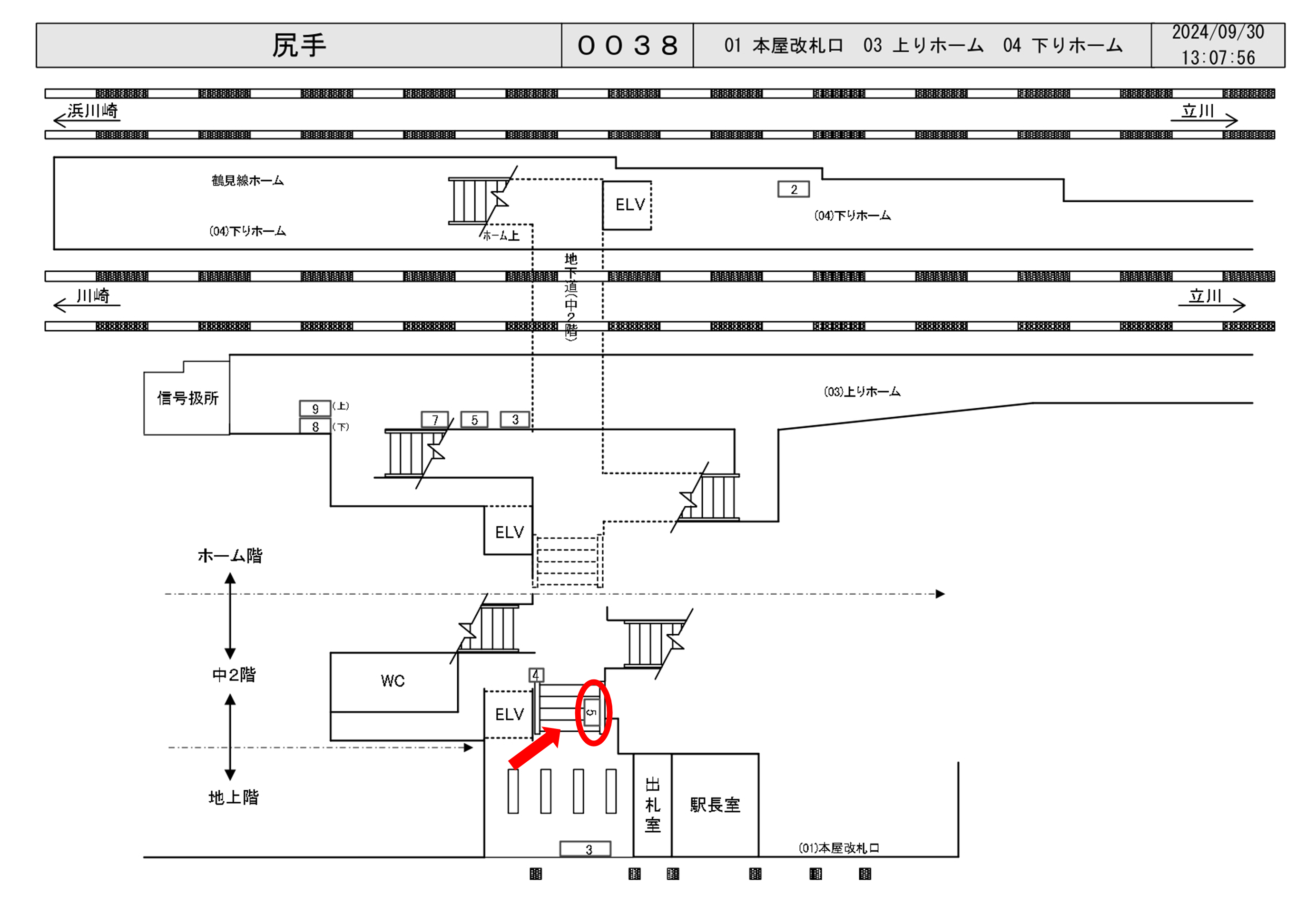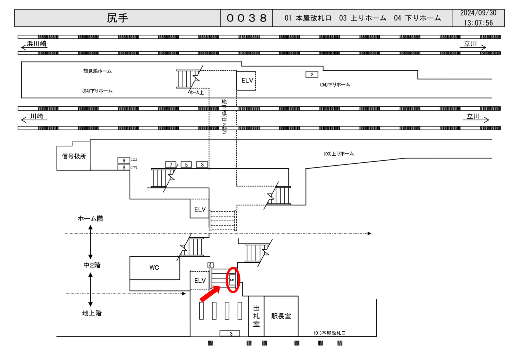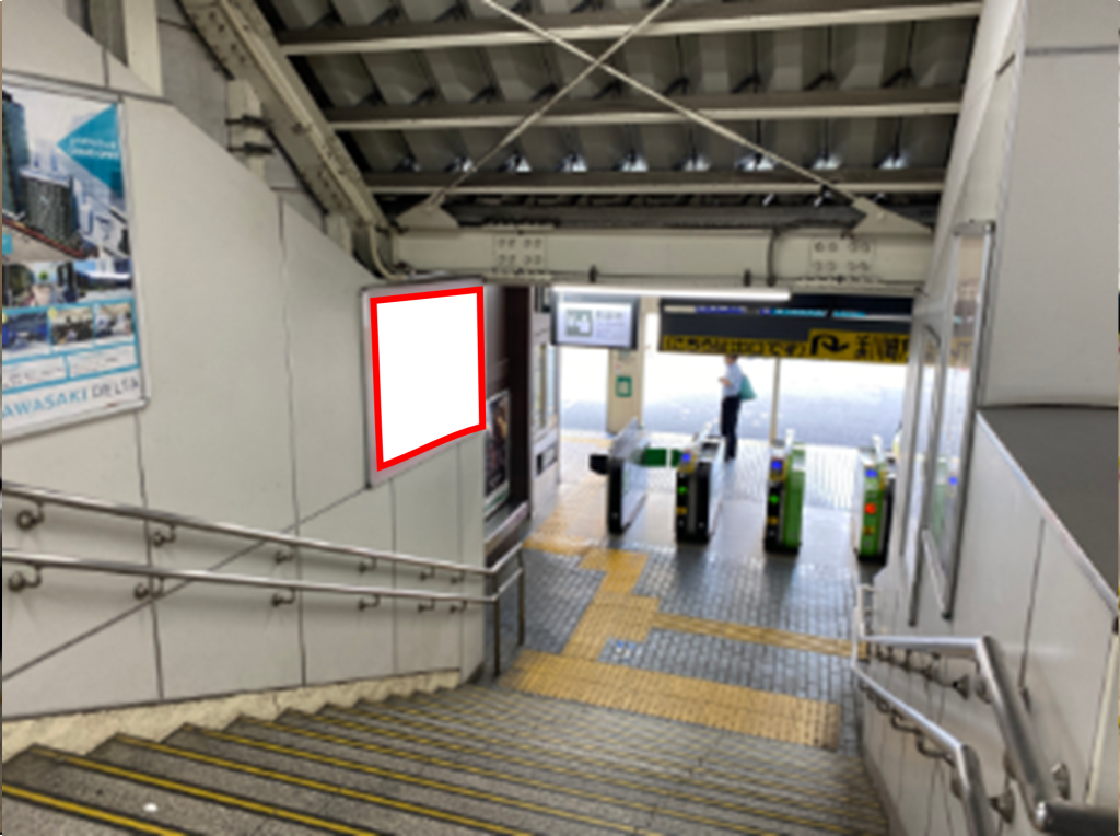 JR南武線 尻手駅、改札内の階段の横壁面に設置されている看板です。