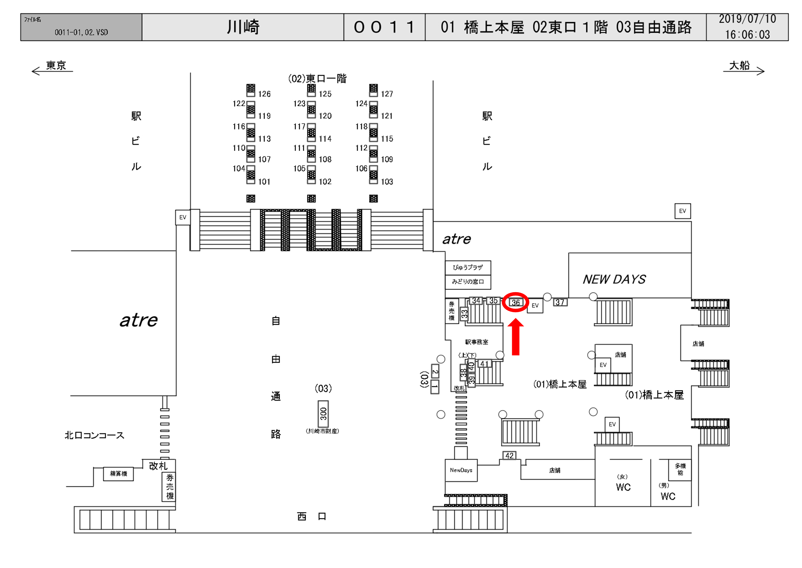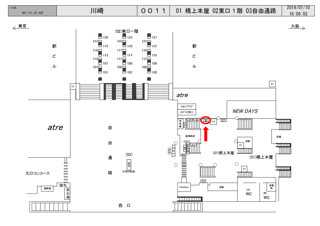 JR川崎駅の中央南改札内、Nesdays横の壁面に設置されている看板です。