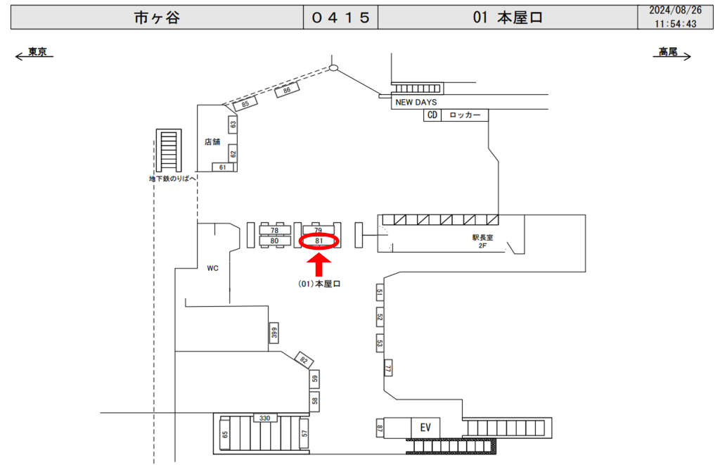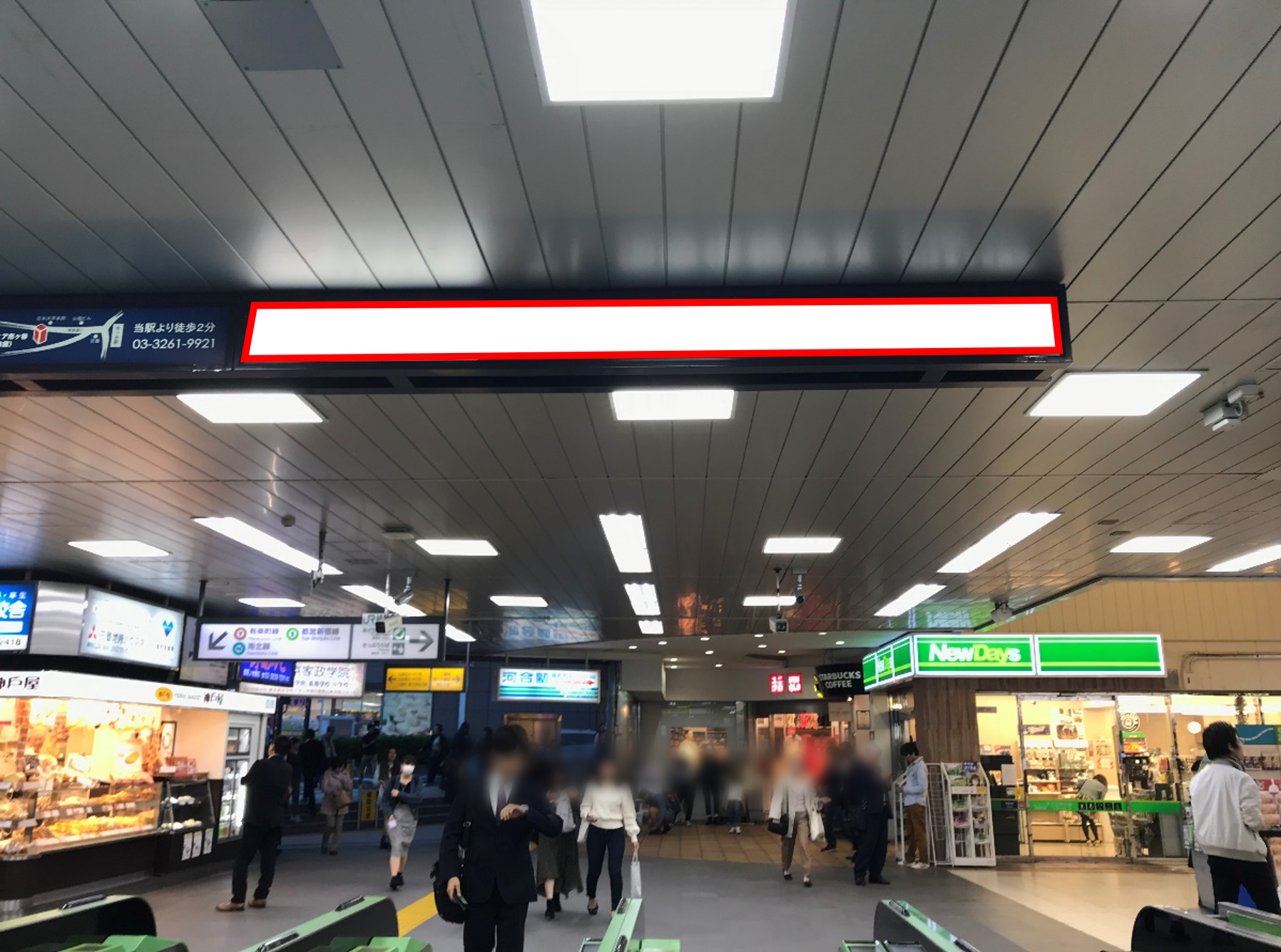 JR市ヶ谷駅の改札出口正面上に設置された看板です。