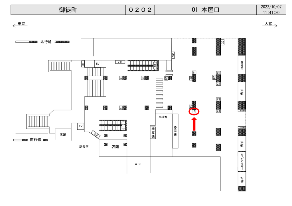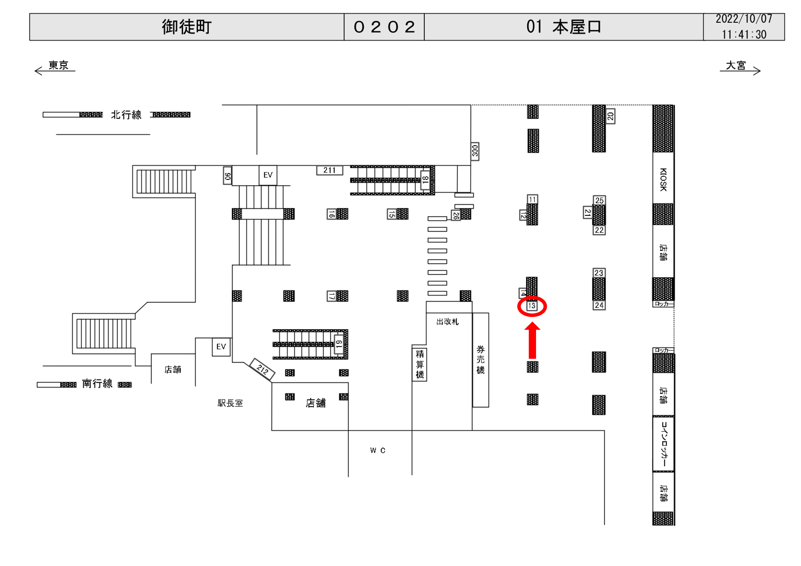 JR御徒町駅の北口改札外通路、券売機前の柱面に設置された電飾看板です。