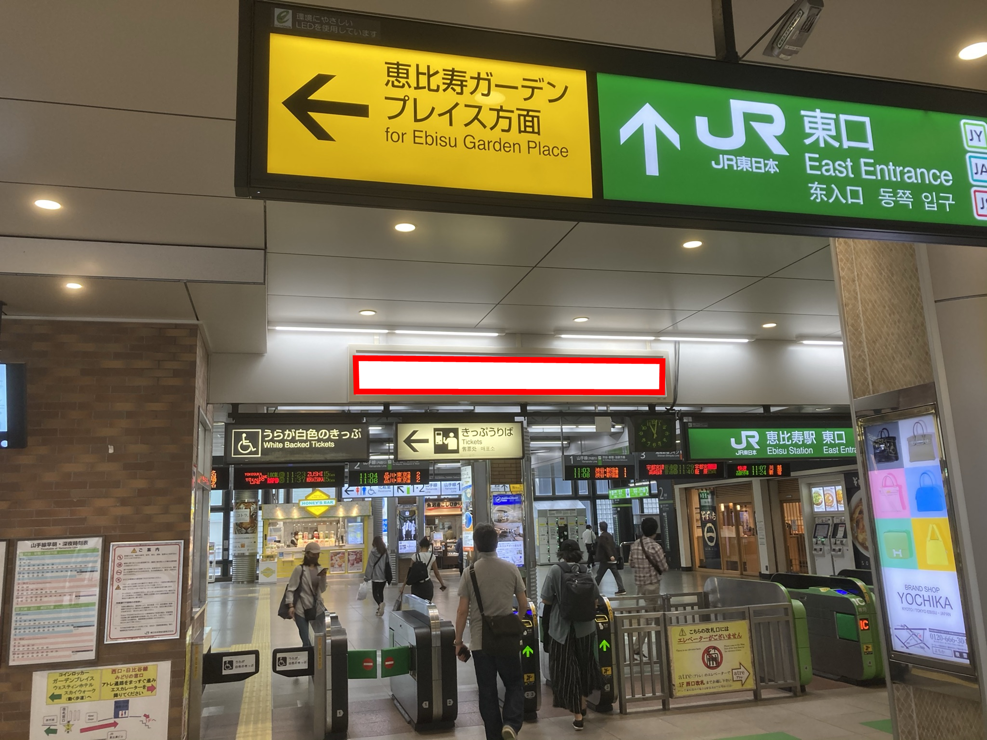 JR恵比寿駅の東口、改札のすぐ上に設置された電飾看板です。
